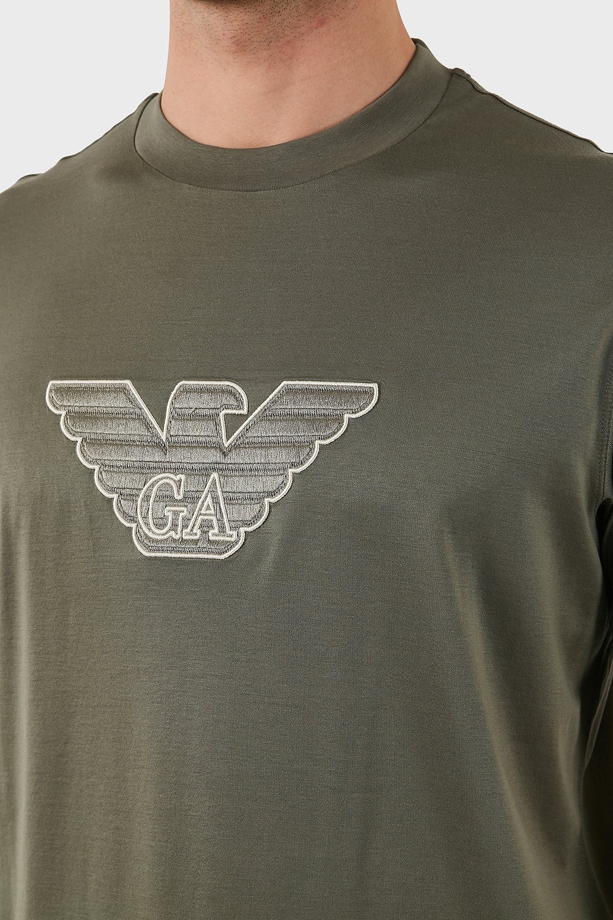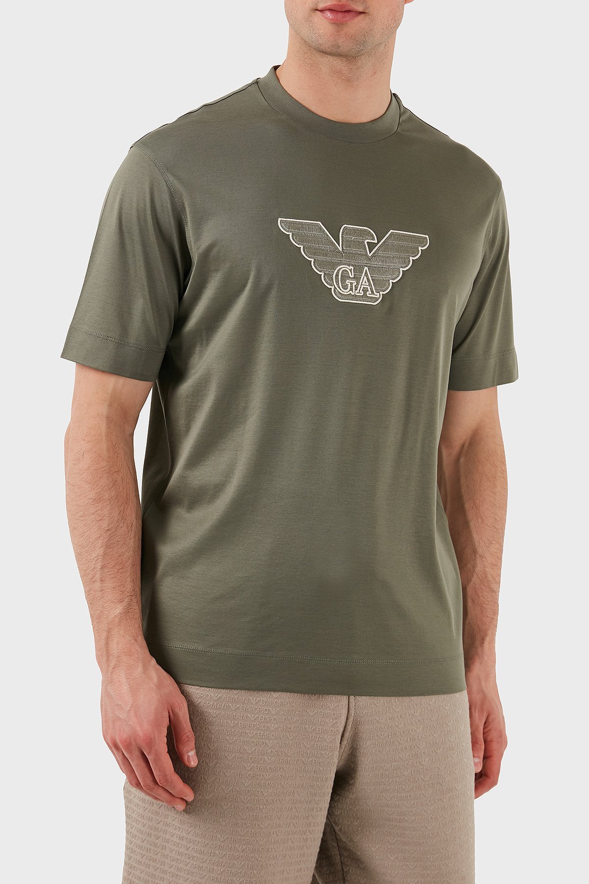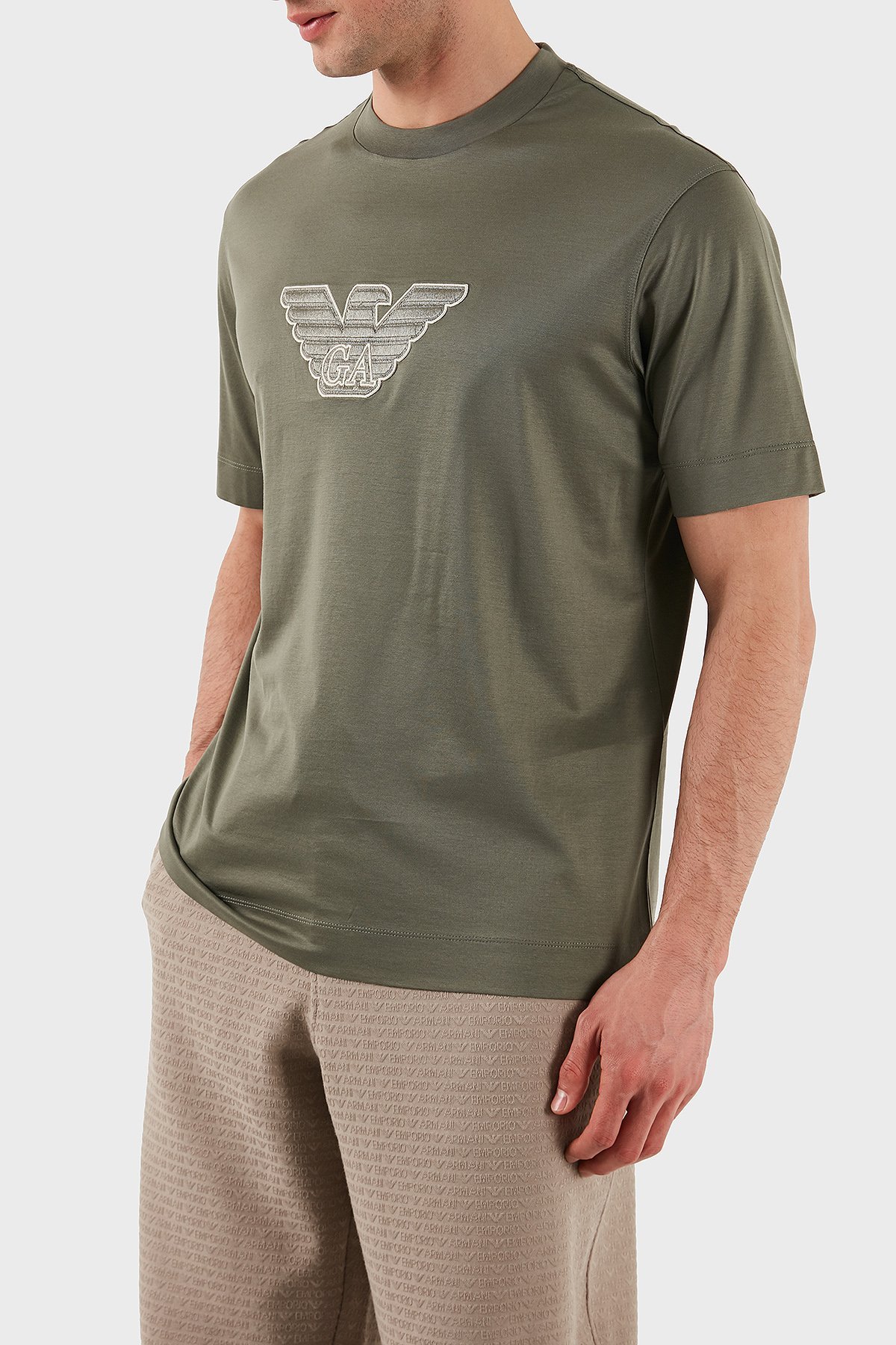 Logo İşlemeli Regular Fit Pamuklu Bisiklet Yaka Erkek T Shirt EM001033 AF10017 M8129 HAKİ