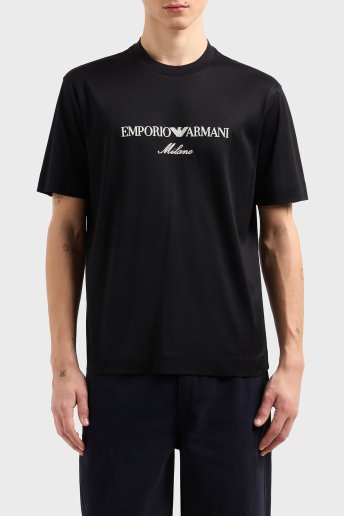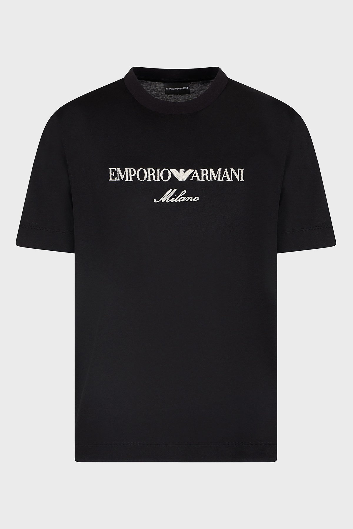Logo İşlemeli Regular Fit Pamuklu Bisiklet Yaka Erkek T Shirt EM001033 AF10017 MC169 SİYAH