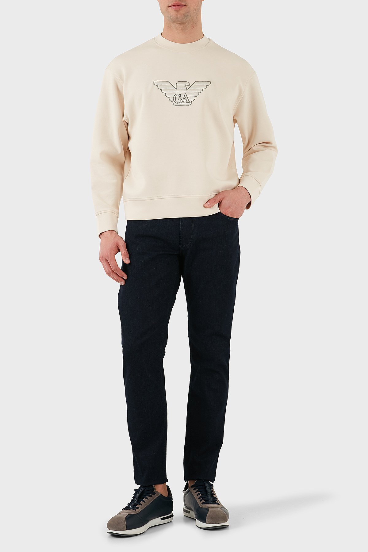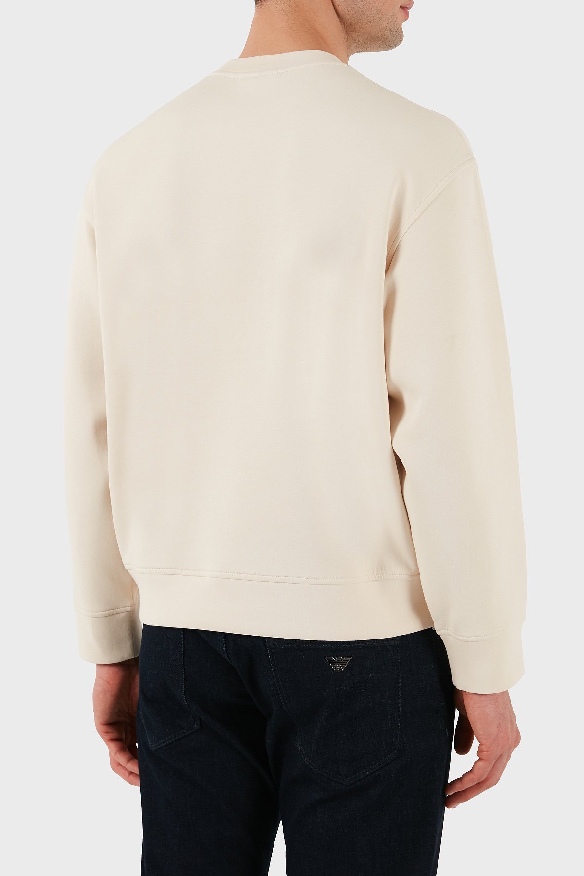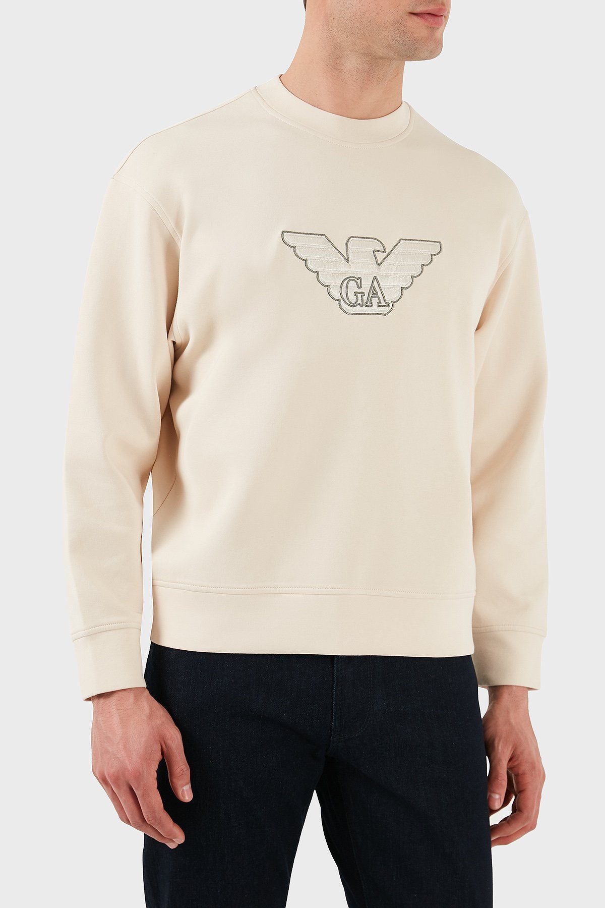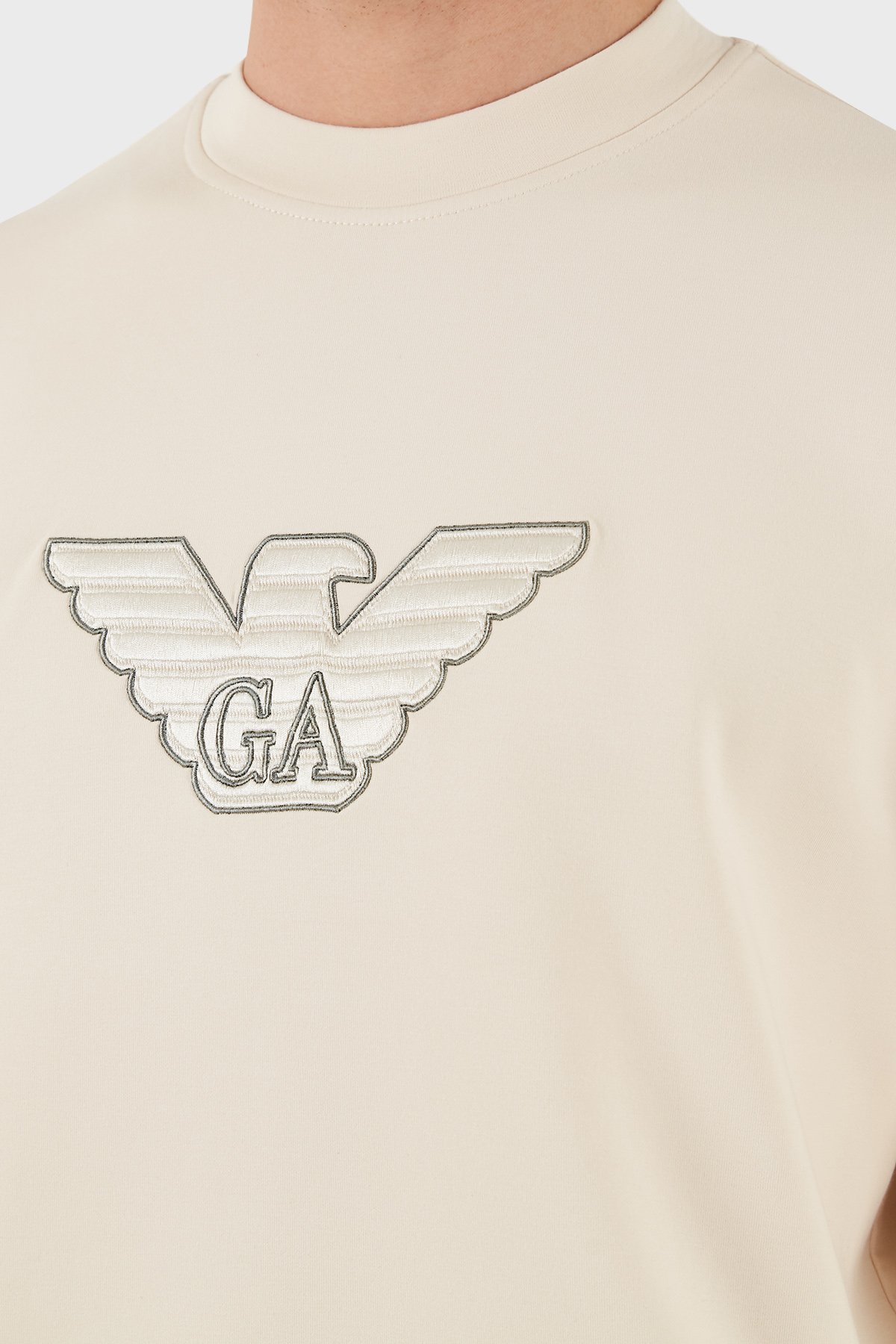 Logo İşlemeli Streç Pamuklu Regular Fit Bisiklet Yaka Erkek Sweat EM001052 AF10013 M1089 EKRU