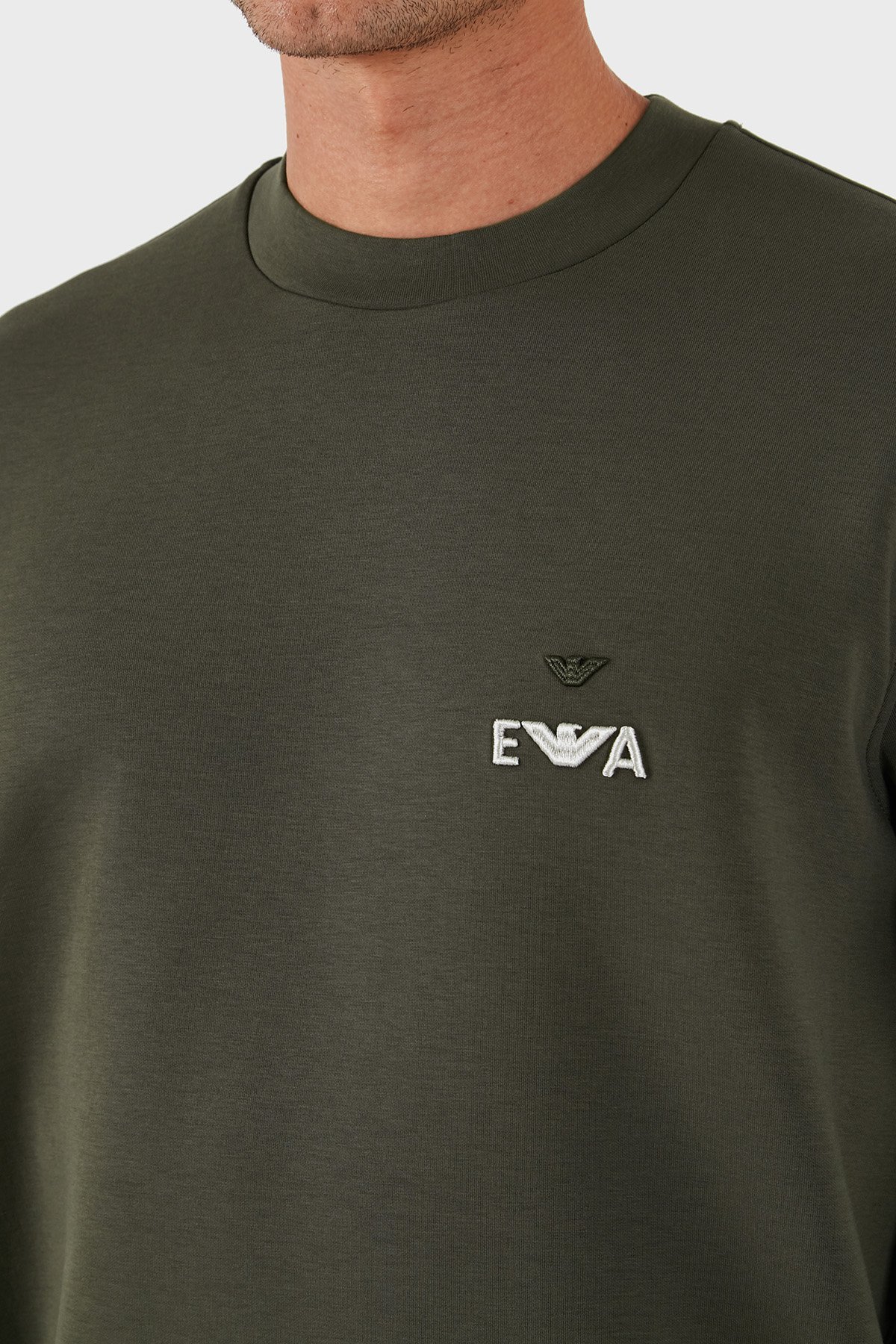 Logo İşlemeli Streç Pamuklu Regular Fit Bisiklet Yaka Erkek Sweat EM002919 AF10013 U8120 HAKİ