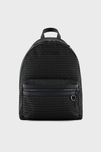 Logo Kaplı Jakarlı Ayarlanabilir Askılı Erkek Sırt Çantası EM001209 AF13823 U8168 SİYAH