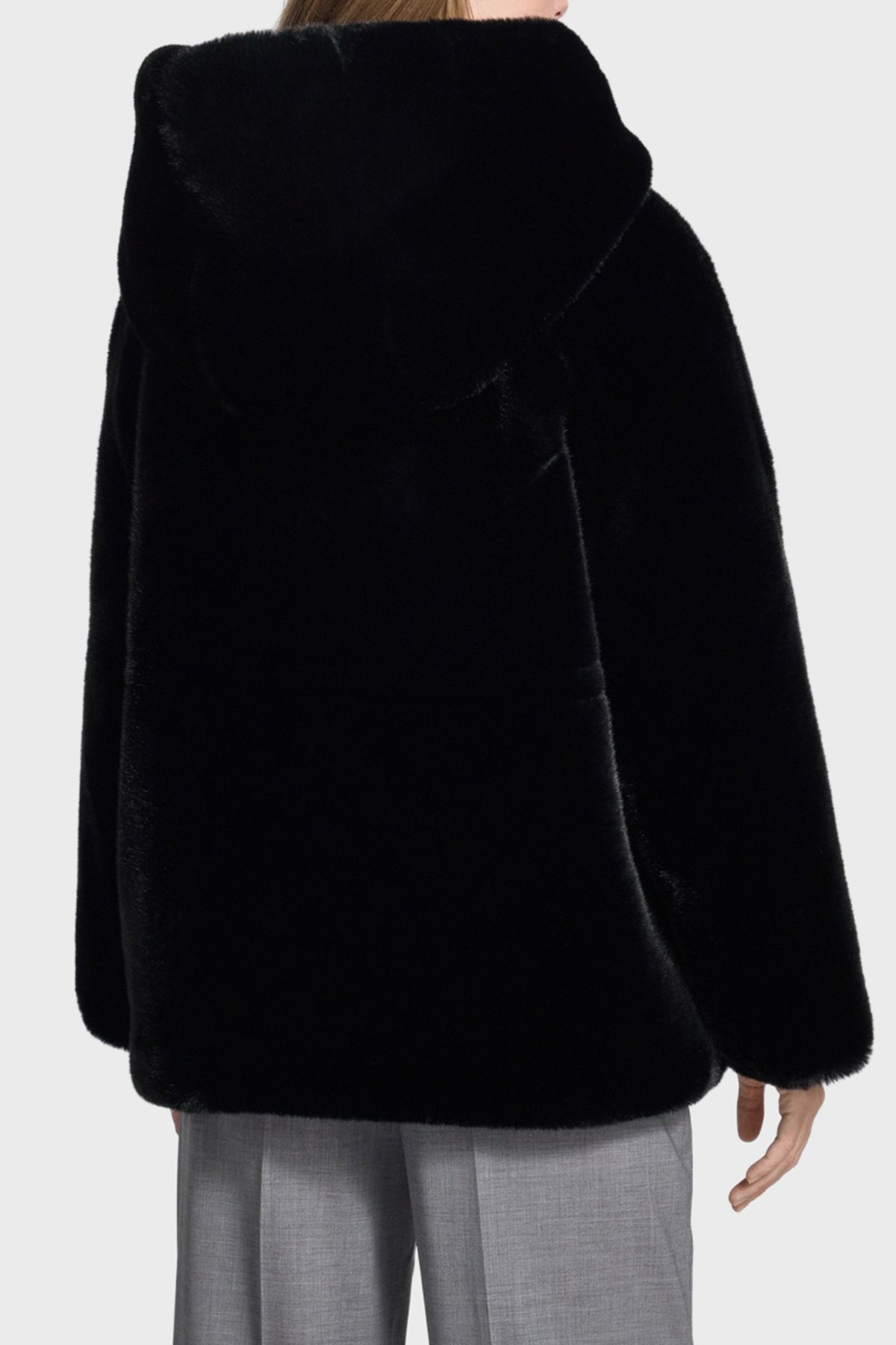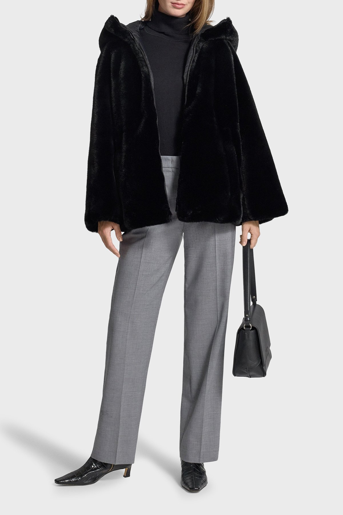 Logo Nakışlı Çift Taraflı Comfort Fit Suni Kürklü Bayan Kaban EW001467 AF14618 UC001 SİYAH