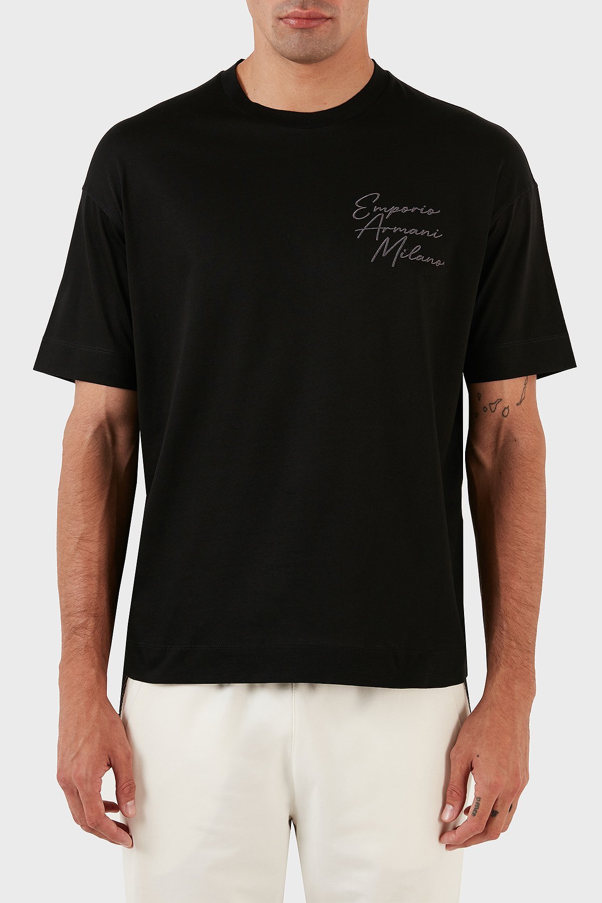 Logo Yazılı Bisiklet Yaka % 100 Pamuk Regular Fit Erkek T Shirt 6L1TG3 1JSAZ 0030 SİYAH