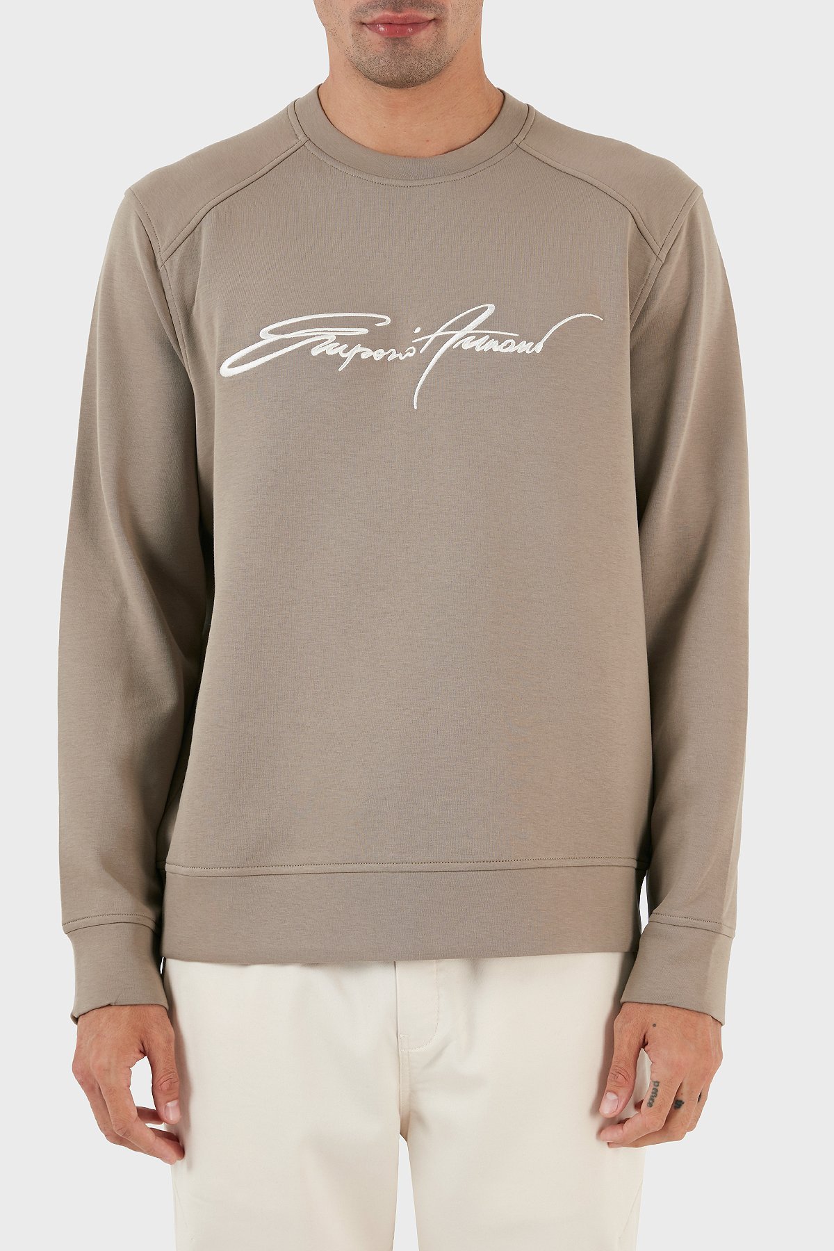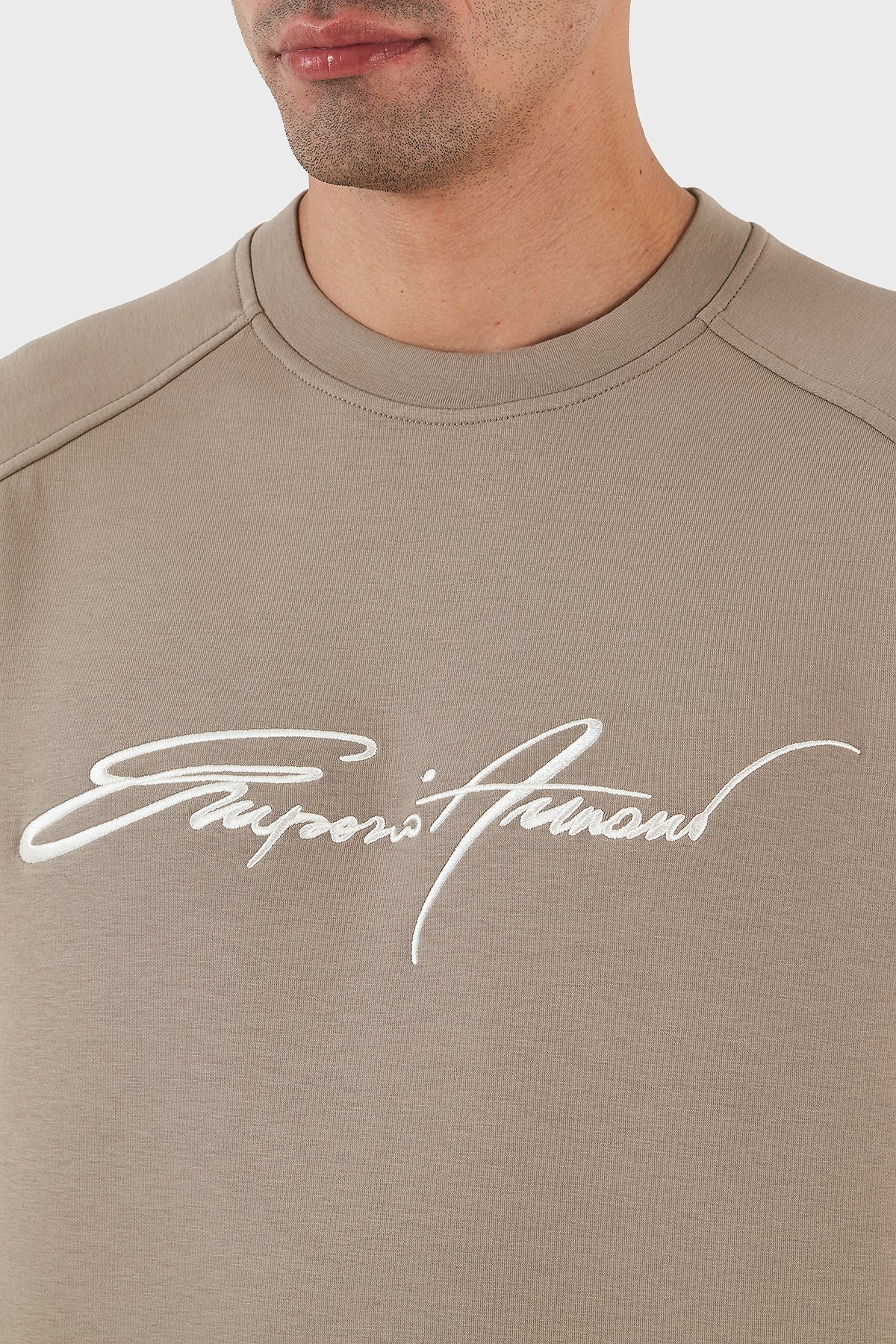 Logo Yazılı Bisiklet Yaka Regular Fit Pamuklu Erkek Sweat 6L1MP3 1JHSZ 01D7 BEJ