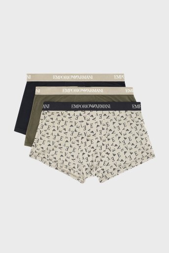 Logolu % 100 Pamuk 3 Pack Erkek Boxer EM000260 AF10800 MC112 Siyah-Yeşil-Krem