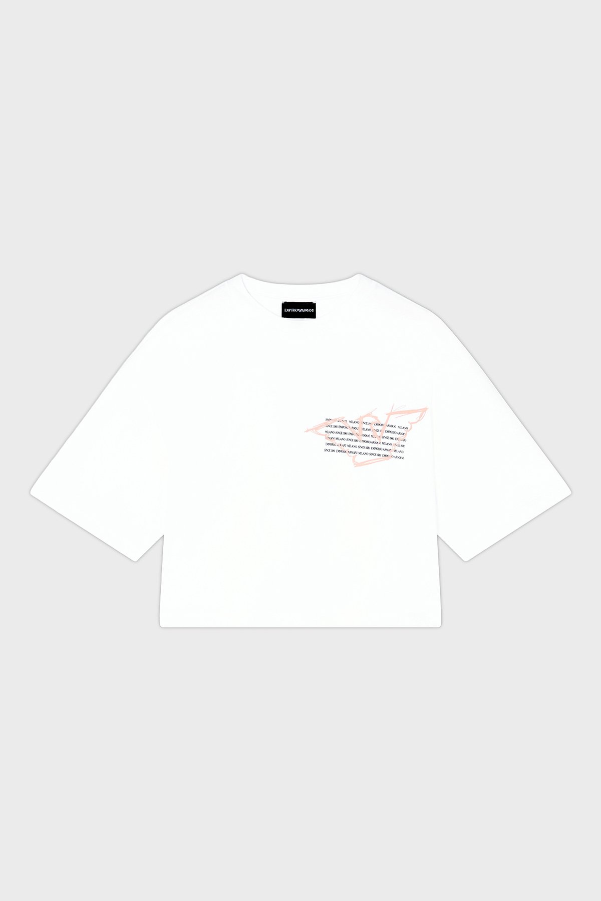 Logolu % 100 Pamuk Cropped Fit Bisiklet Yaka Bayan T Shirt EW004388 AF12597 U0002 BEYAZ
