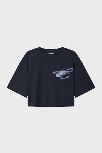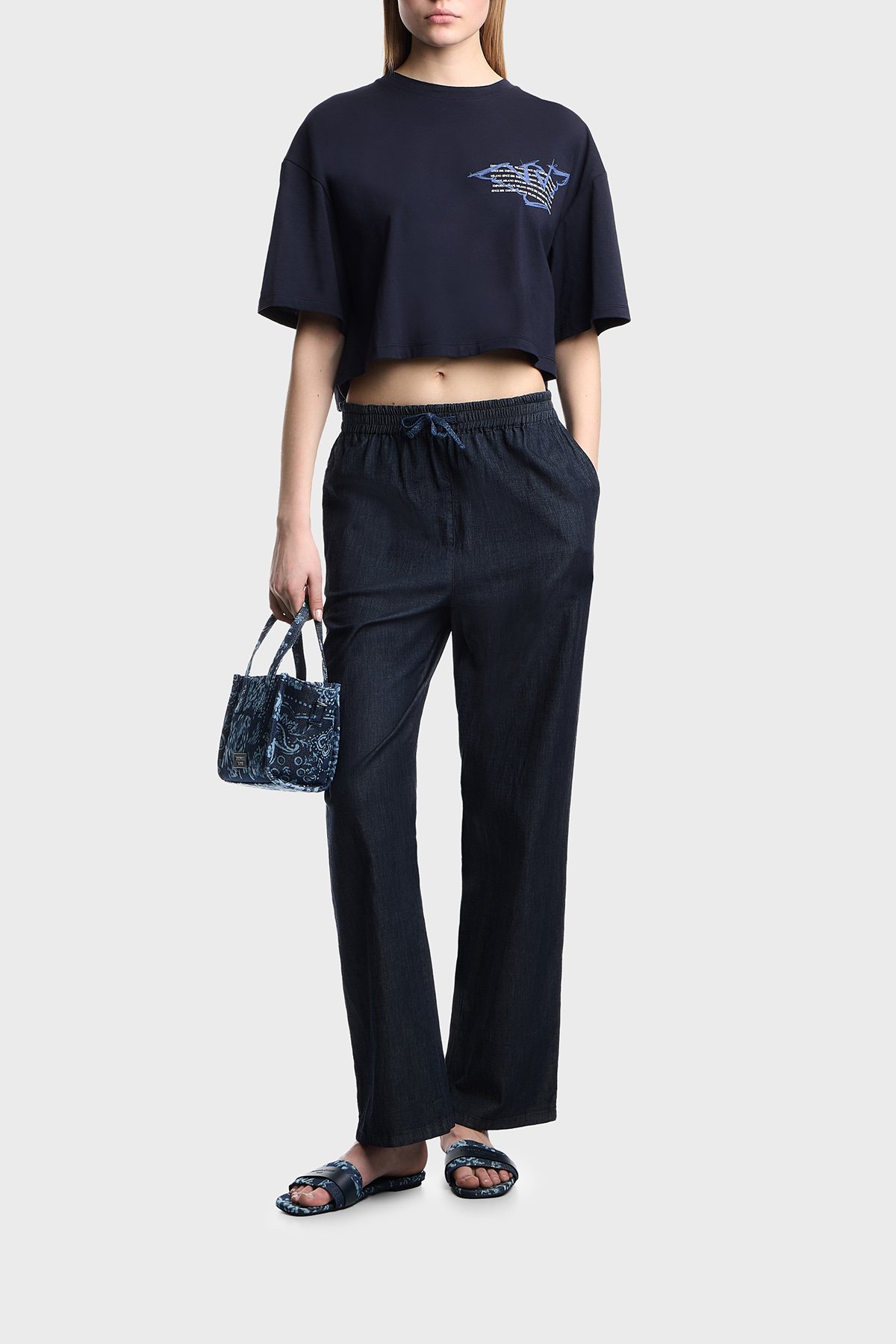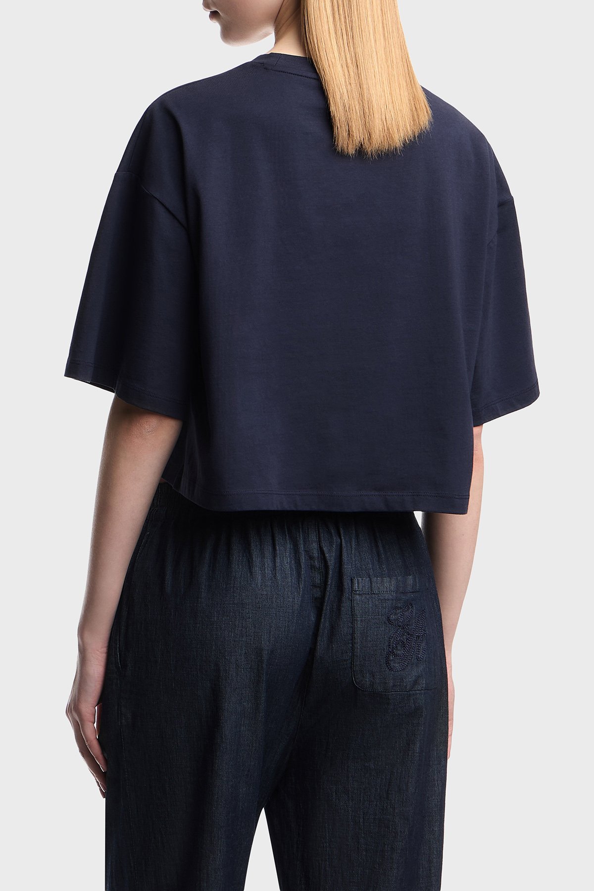 Logolu % 100 Pamuk Cropped Fit Bisiklet Yaka Bayan T Shirt EW004388 AF12597 UB115 LACİVERT