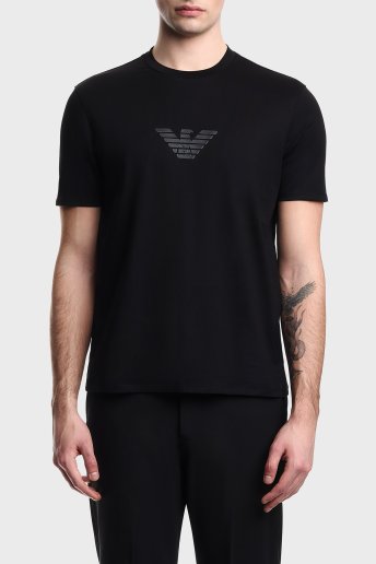 Logolu % 100 Pamuk Regular Fit Bisiklet Yaka Erkek T Shirt EM004583 AF13669 MC539 SİYAH