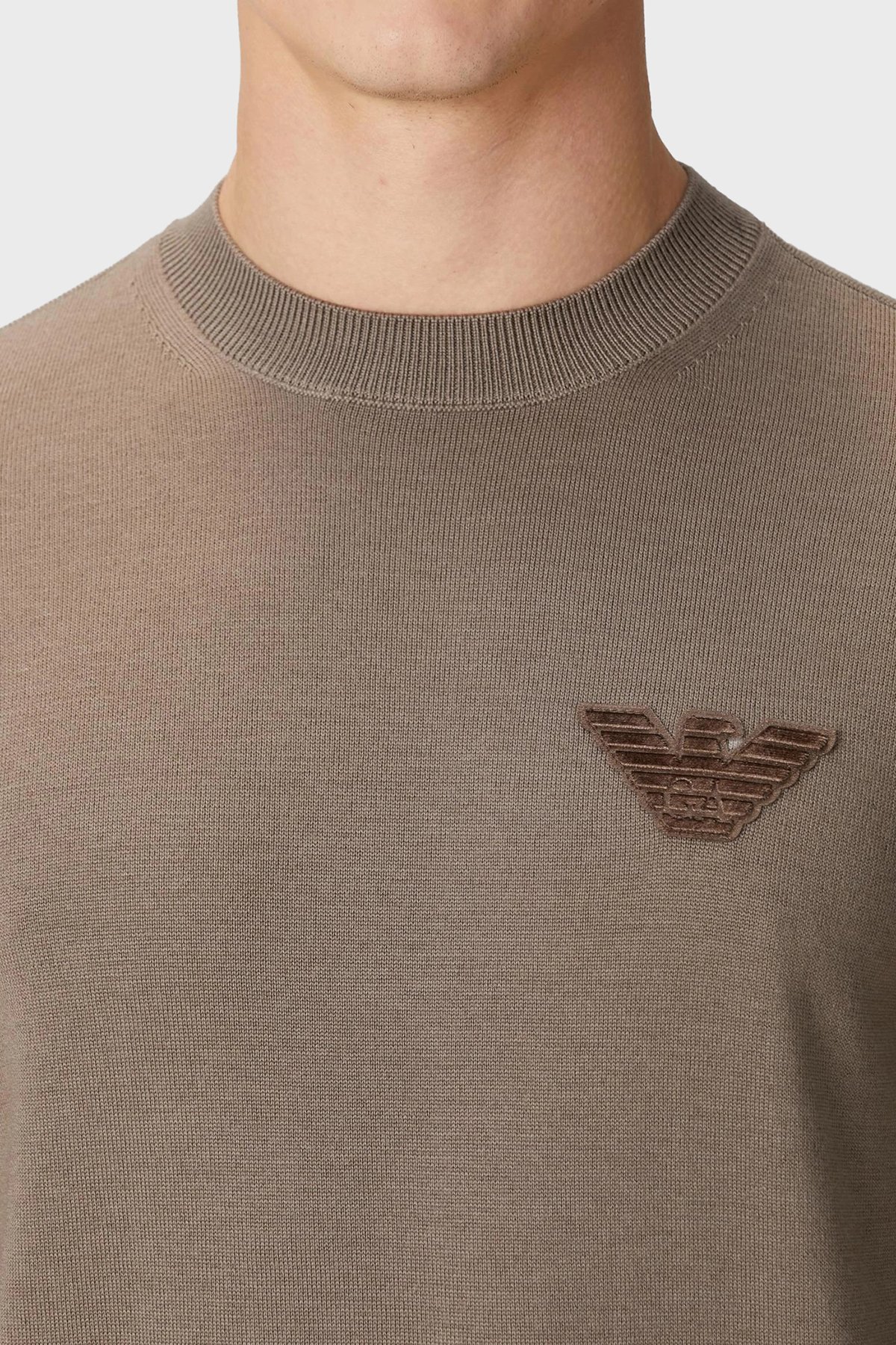 Logolu % 100 Yün Regular Fit Bisiklet Yaka Erkek Kazak EM002419 AF14158 U6189 KAHVE