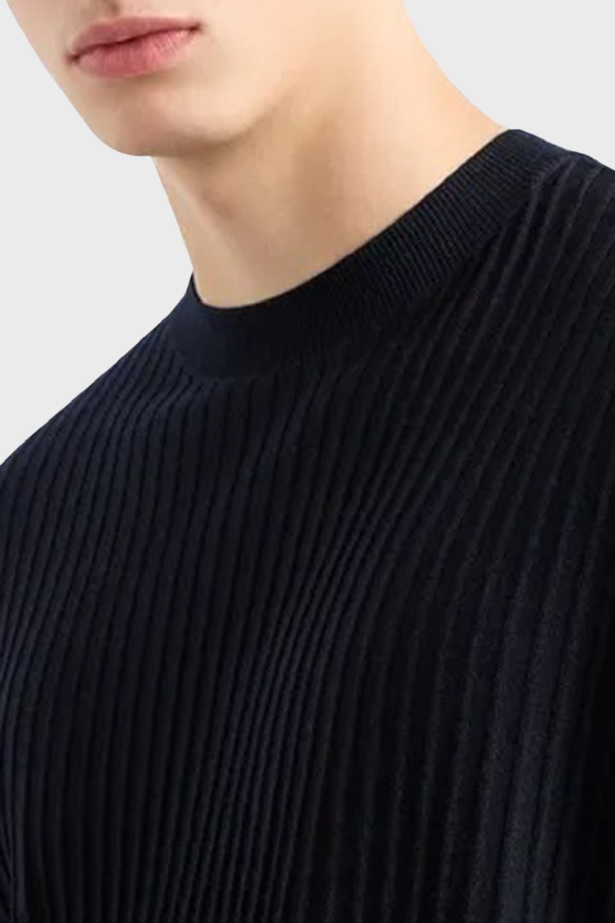 Logolu % 100 Yünlü Slim Fit Erkek Kazak EM000130 AF10460 UB118 LACİVERT