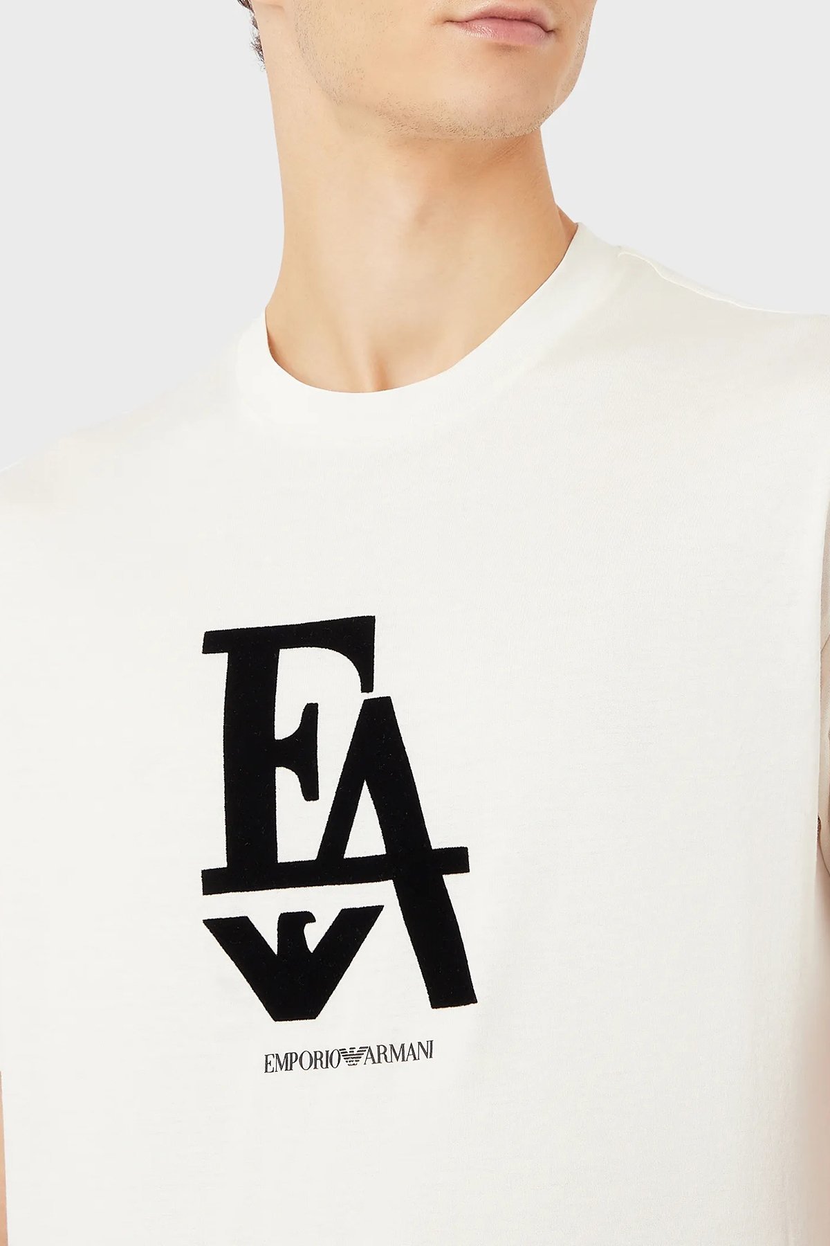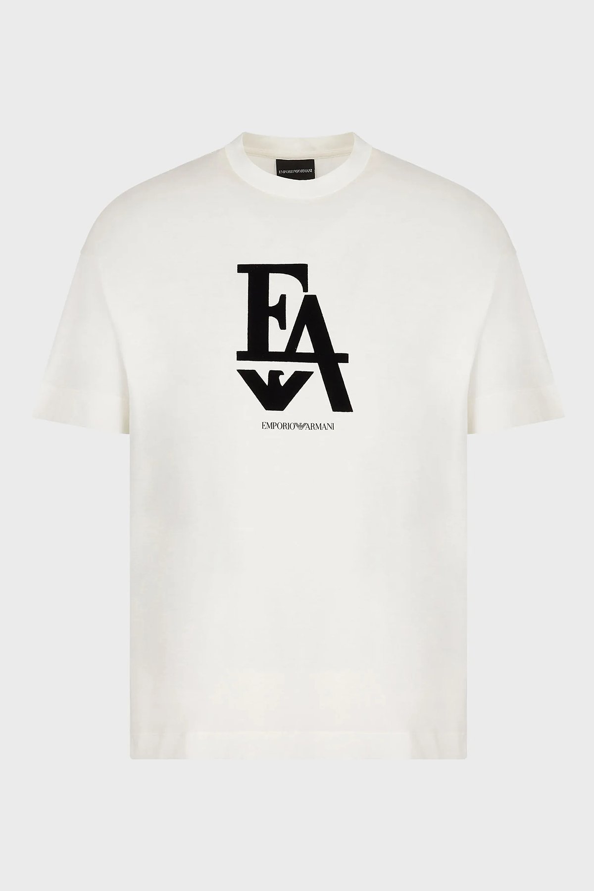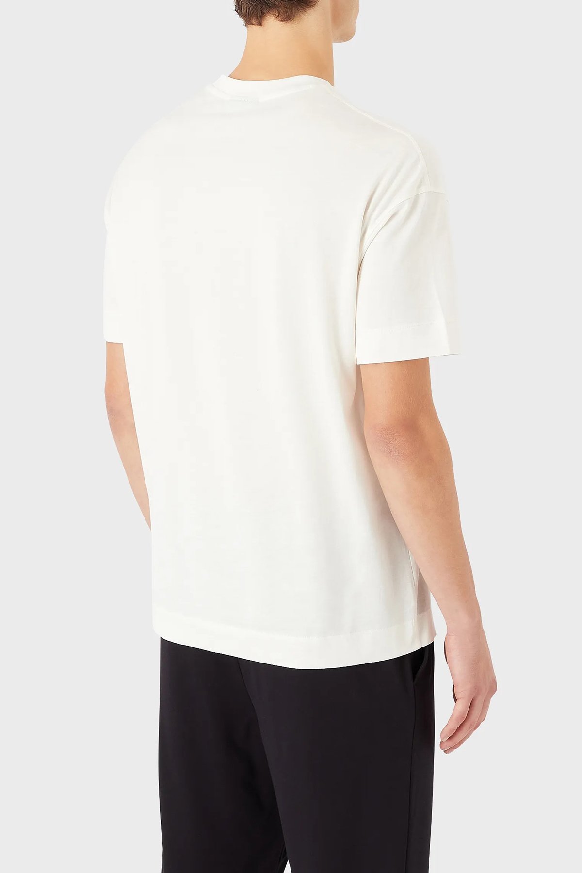 Logolu Bisiklet Yaka % 100 Pamuk Erkek T Shirt 6L1TG1 1JSAZ 01B6 BEYAZ