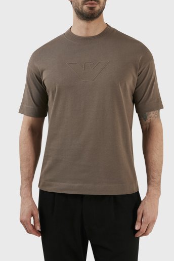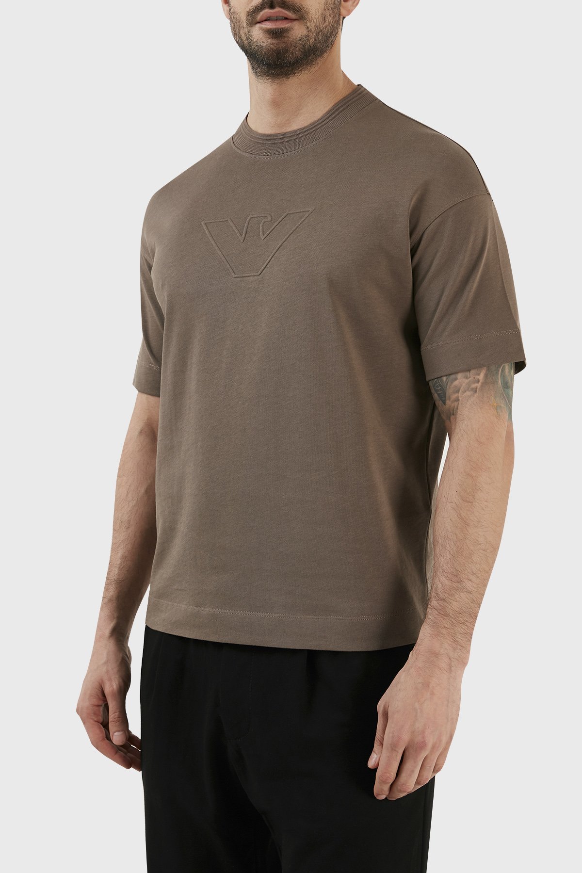 Logolu Bisiklet Yaka % 100 Pamuk Relaxed Fit Erkek T Shirt 3R1TU0 1JWZZ 0484 KAHVE