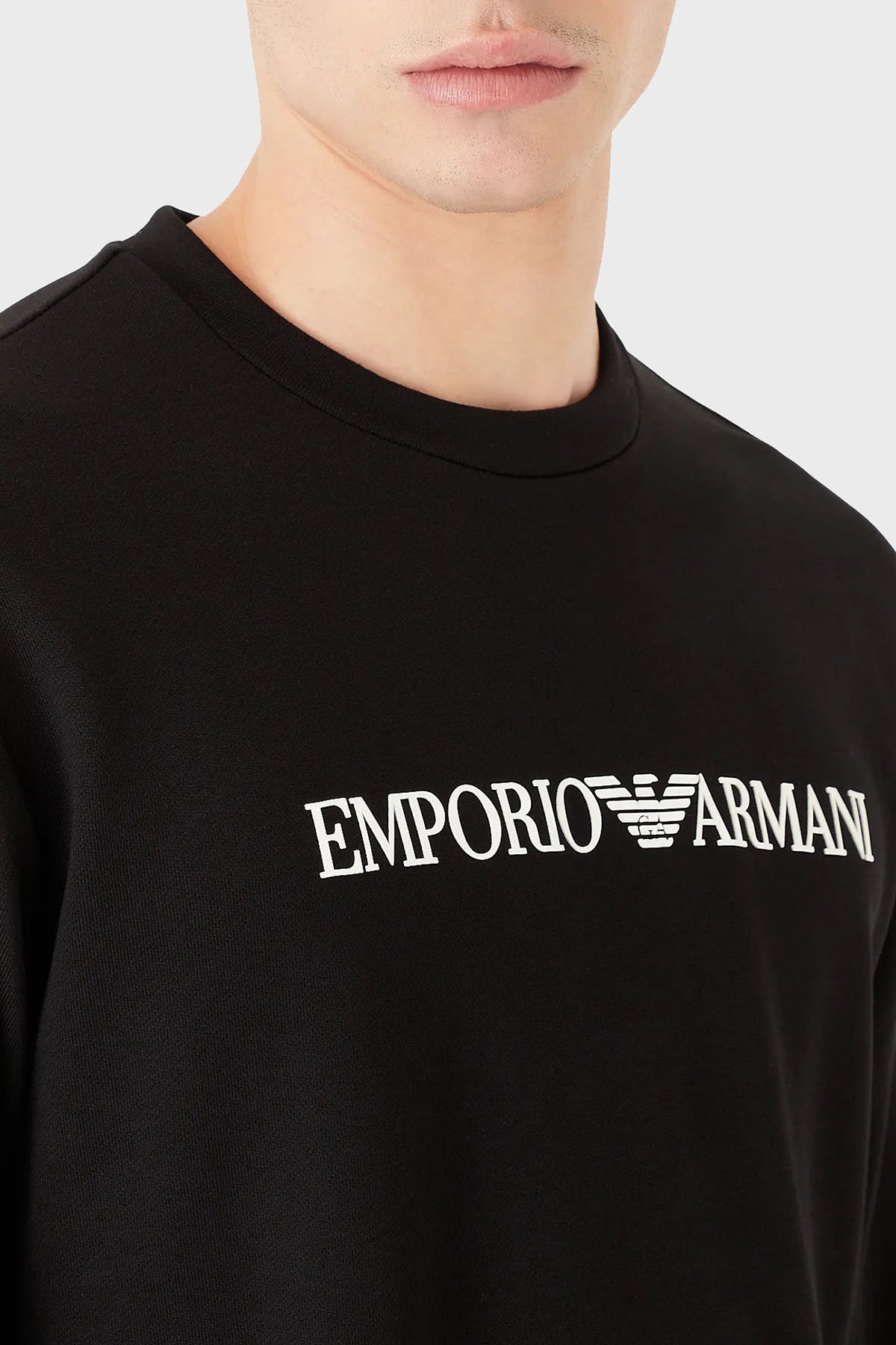 Logolu Bisiklet Yaka Pamuklu Regular Fit Erkek Sweat 8N1MR6 1JRIZ F009 SİYAH