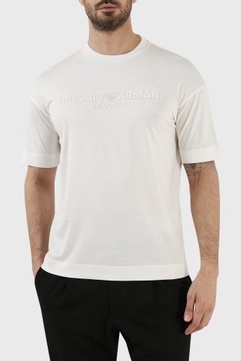 Logolu Bisiklet Yaka Pamuklu Regular Fit Erkek T Shirt 3R1TDF 1JUVZ 0101 BEYAZ