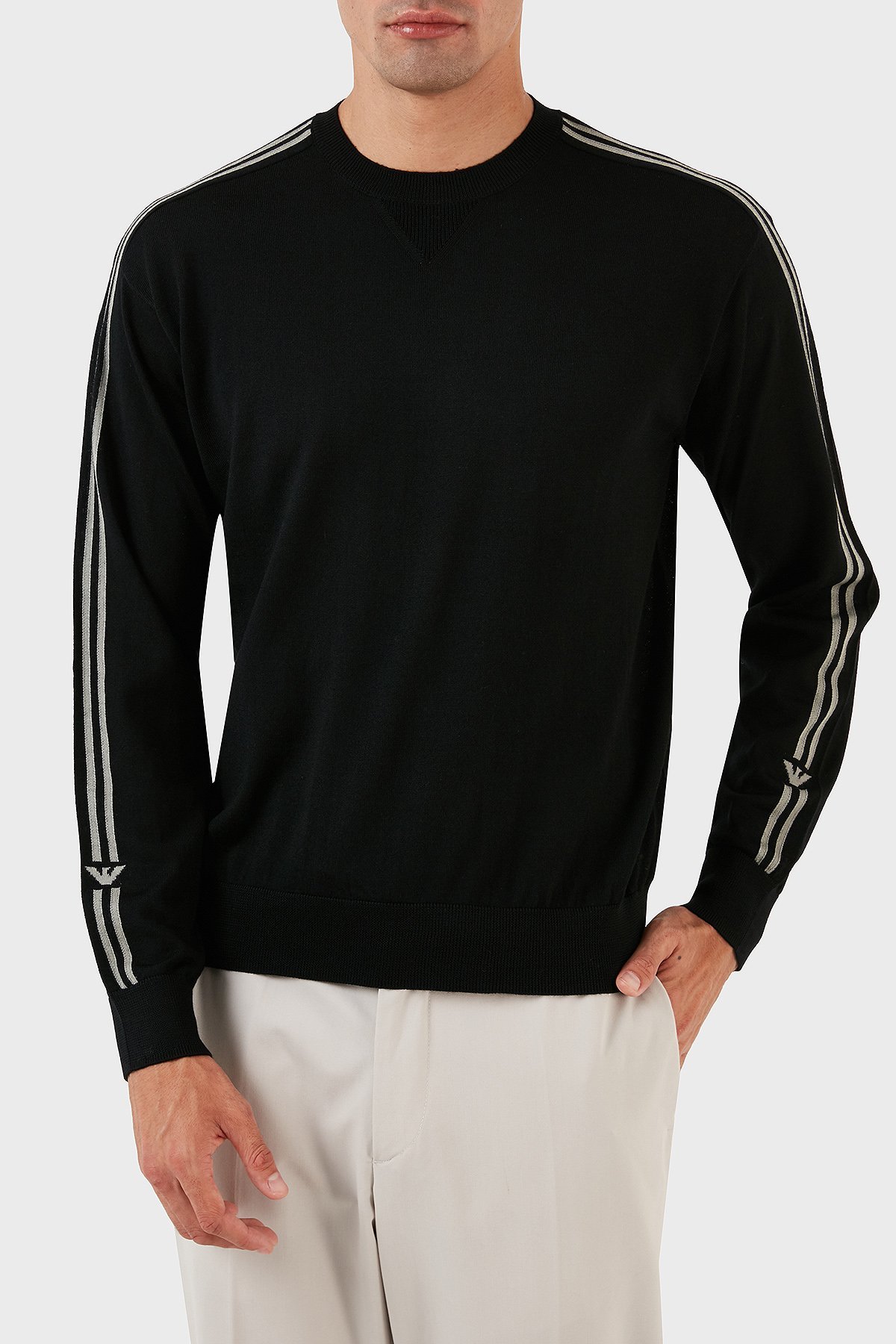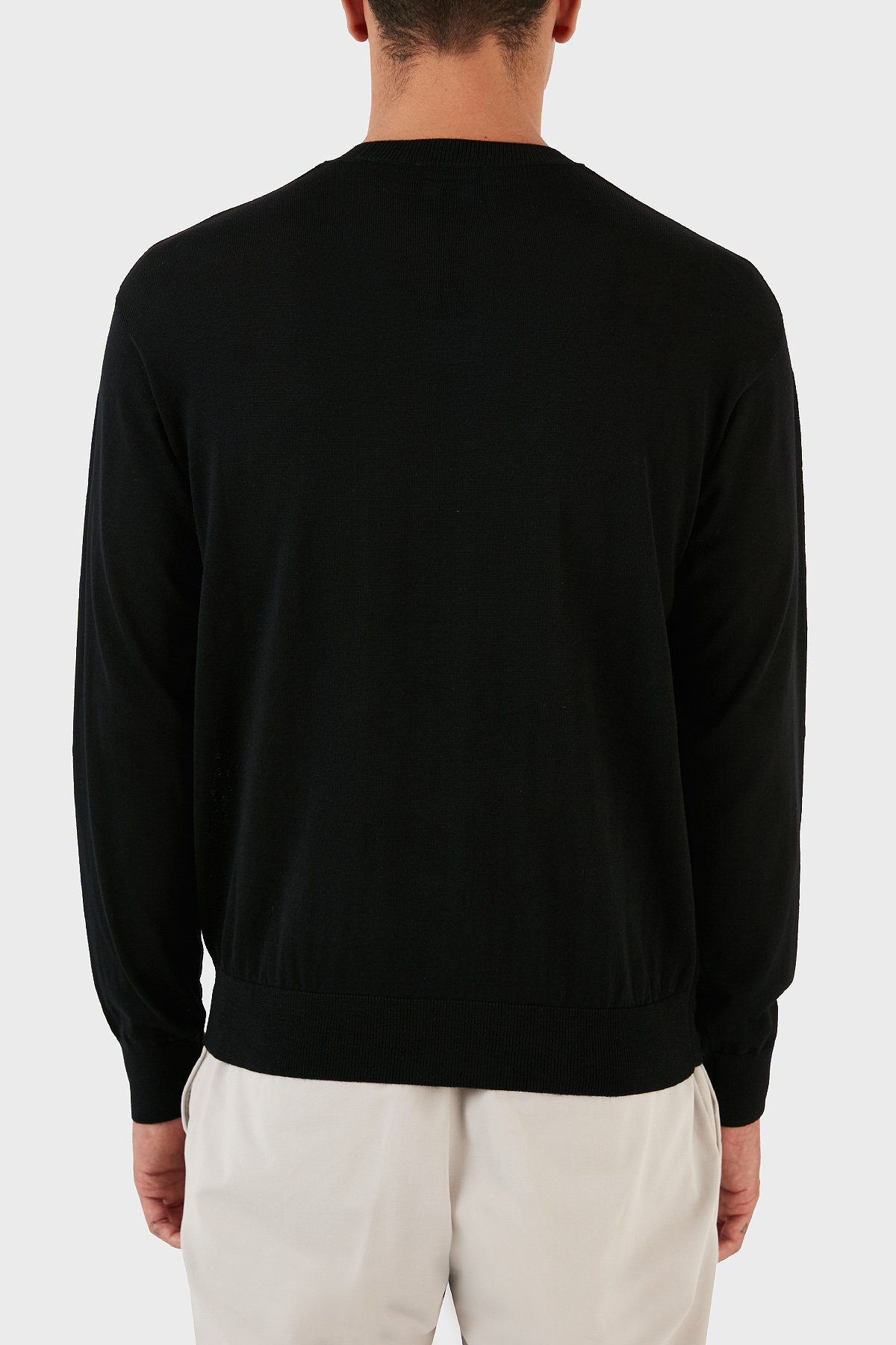 Logolu Bisiklet Yaka Regular Fit % 100 Yün Erkek Kazak 6R1MXG 1MNGZ F093 SİYAH