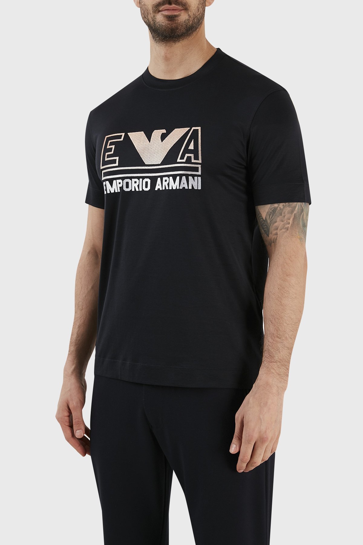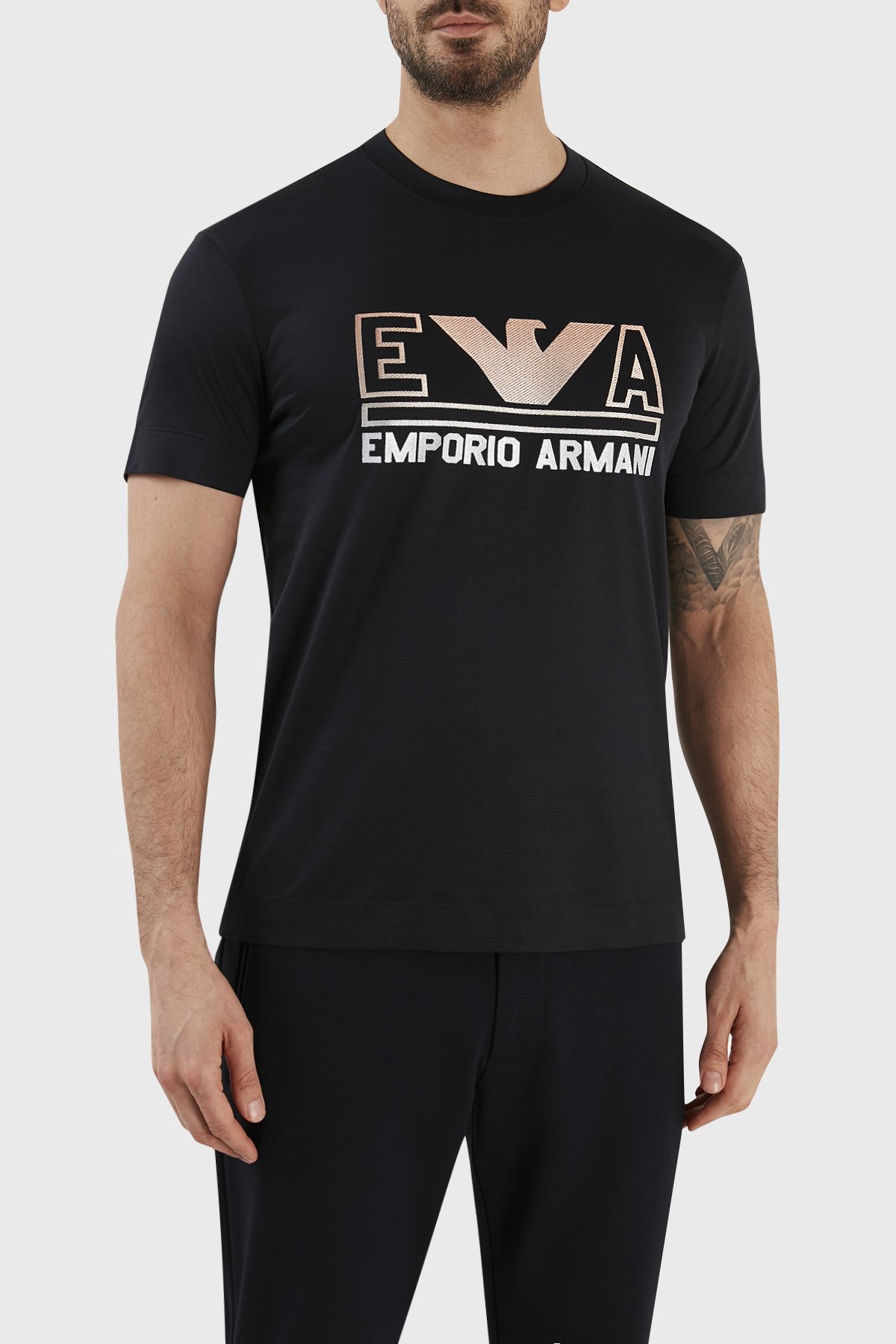 Logolu Bisiklet Yaka Regular Fit Erkek T Shirt 3R1TC4 1JUVZ 09K5 LACİVERT