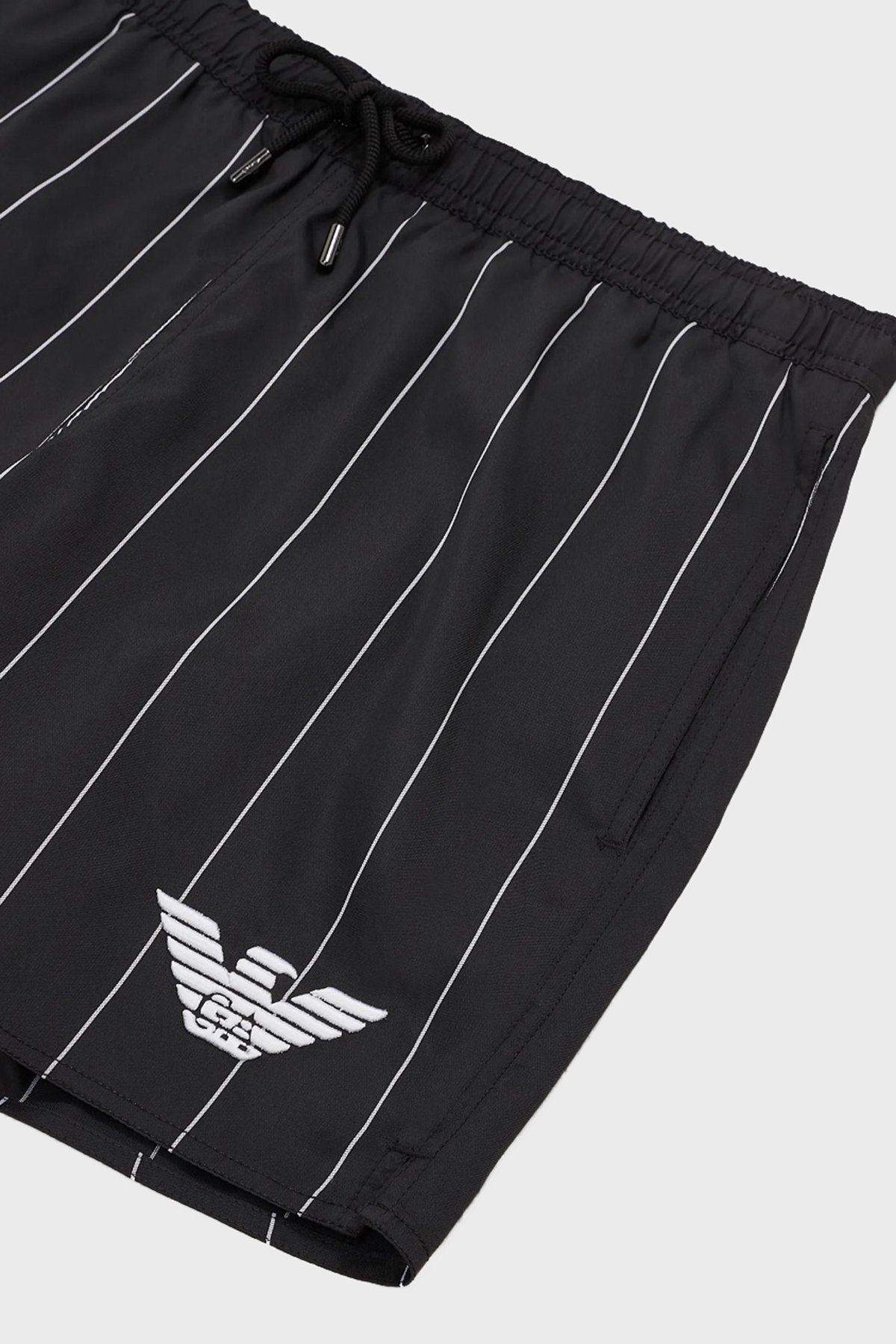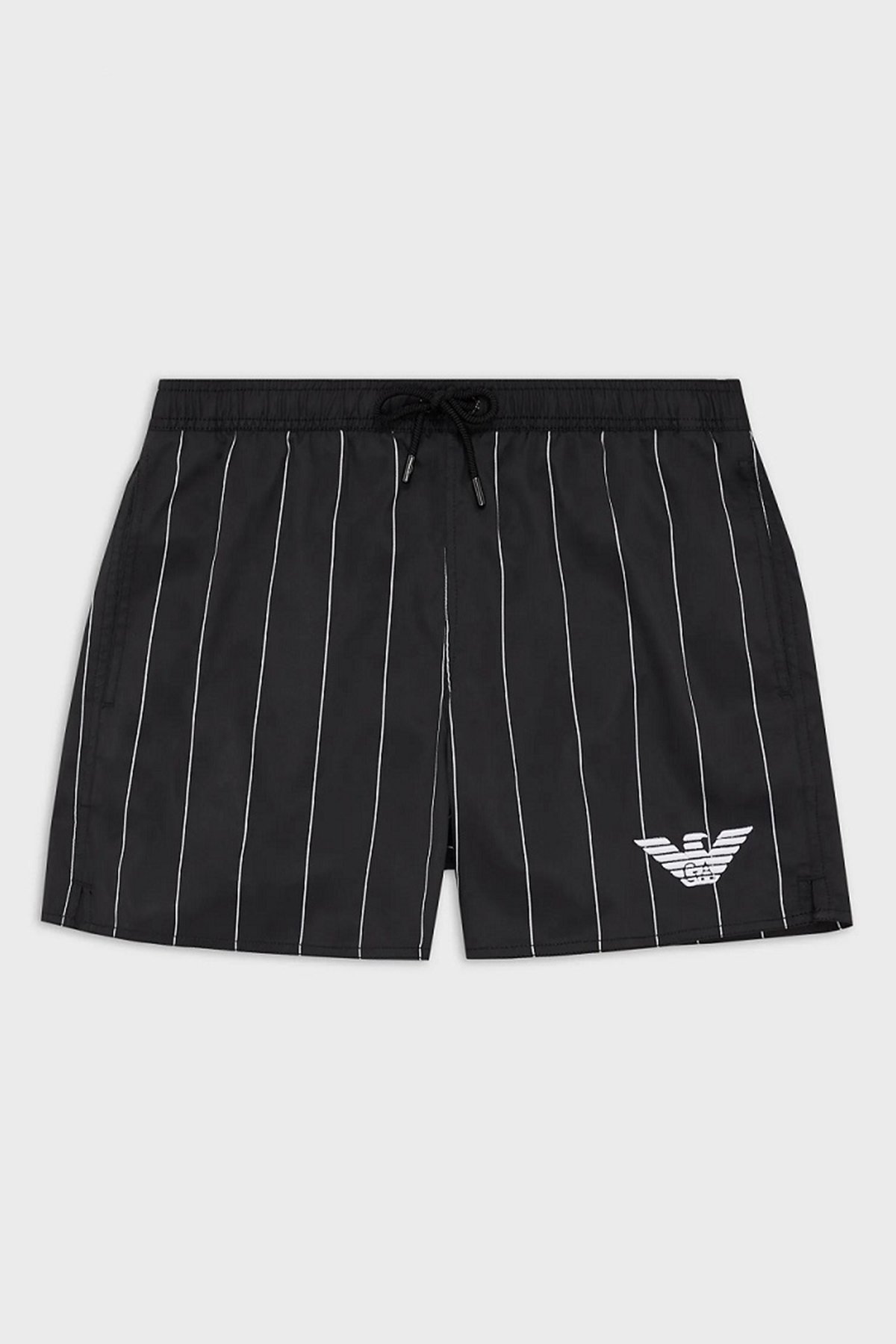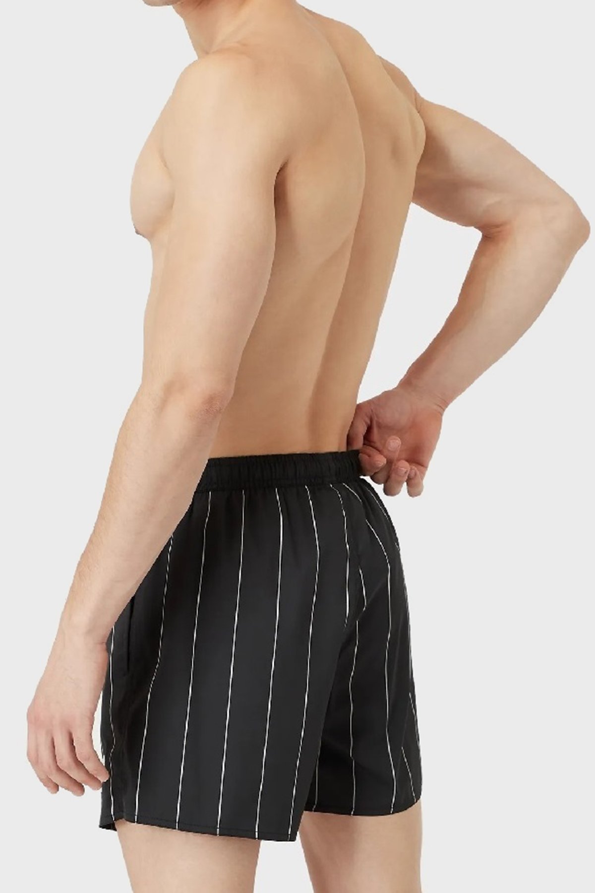 Logolu Çizgili Deniz Şortu Regular Fit Belden Bağlamalı Erkek Mayo Short S 211740 2R442 22920 SİYAH