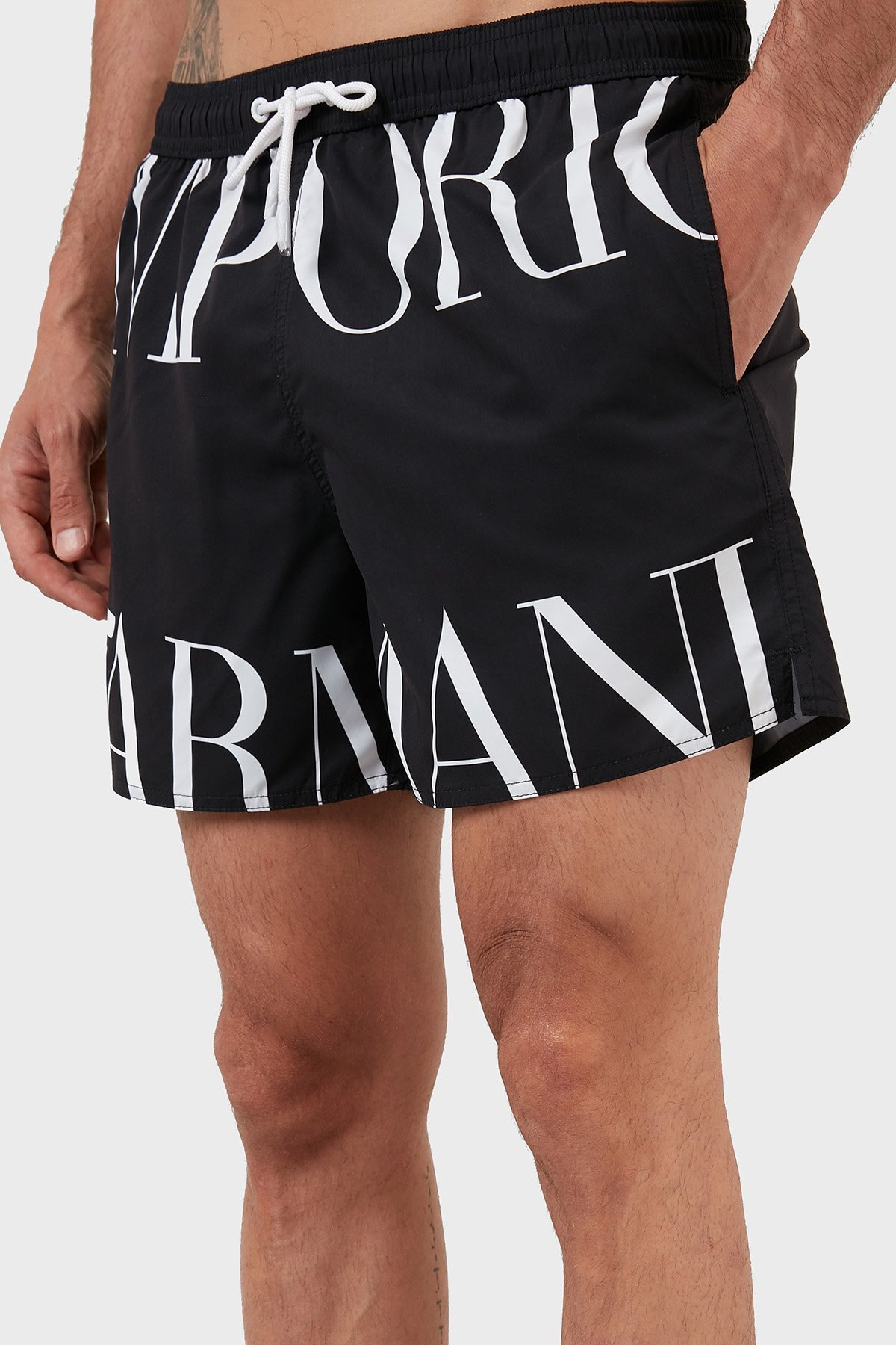 Logolu Deniz Şortu Regular Fit Belden Bağlamalı Erkek Mayo Short S 211740 2R424 08221 SİYAH-BEYAZ