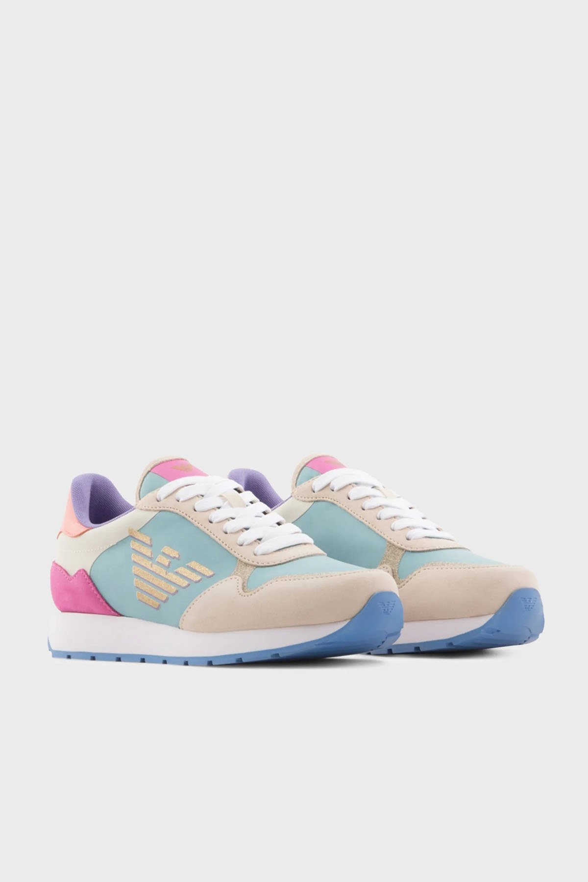 Logolu Deri Sneaker Bayan Ayakkabı X3X179 XN823 S776 MAVİ-BEJ