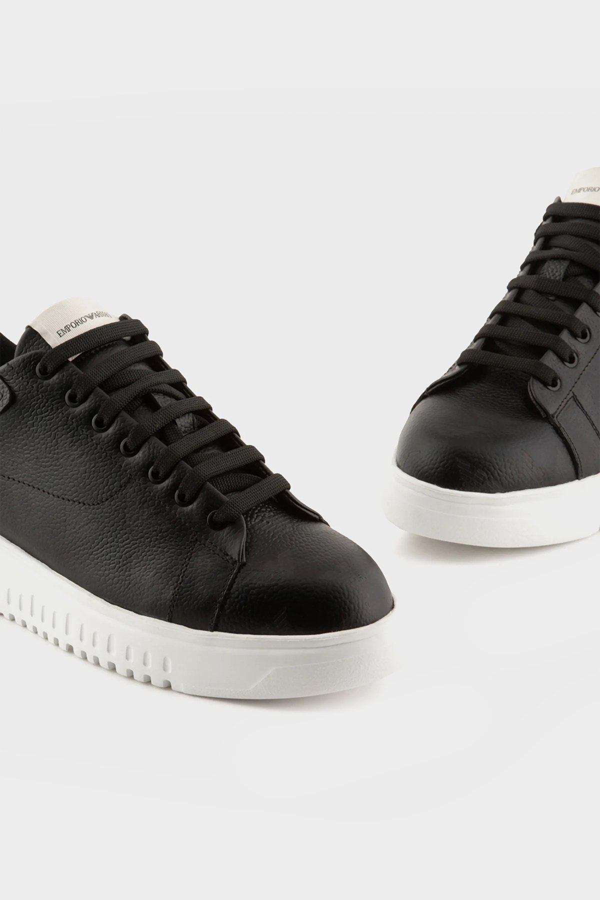 Logolu Deri Sneaker Erkek Ayakkabı X4X264 XN819 K001 SİYAH