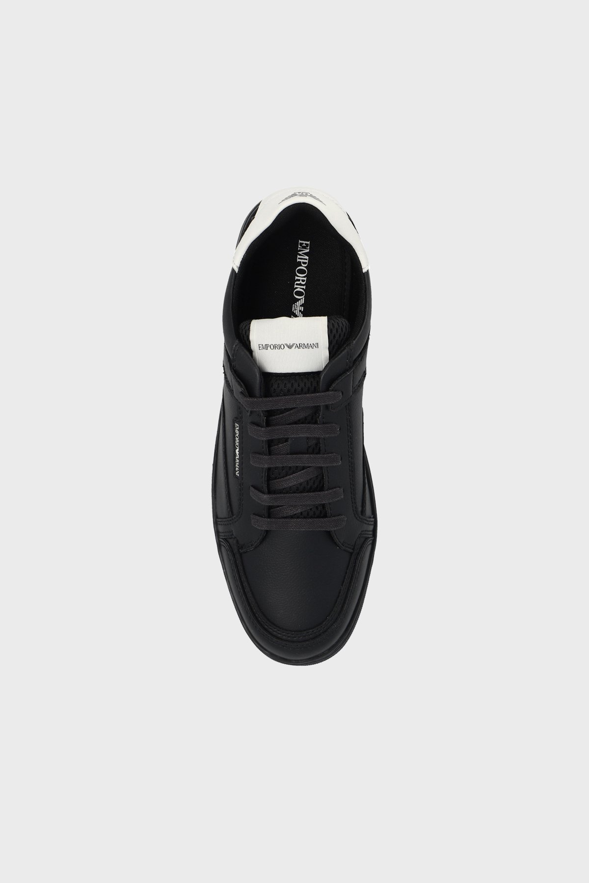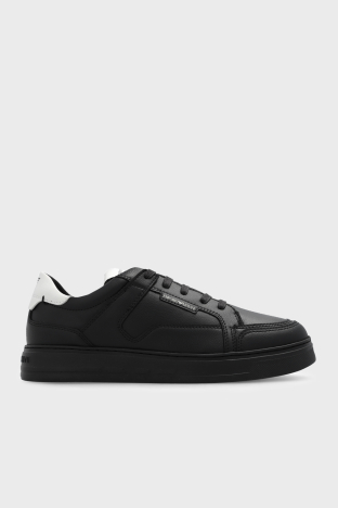 Logolu Deri Sneaker Erkek Ayakkabı X4X568 XN162 U066 SİYAH-BEYAZ