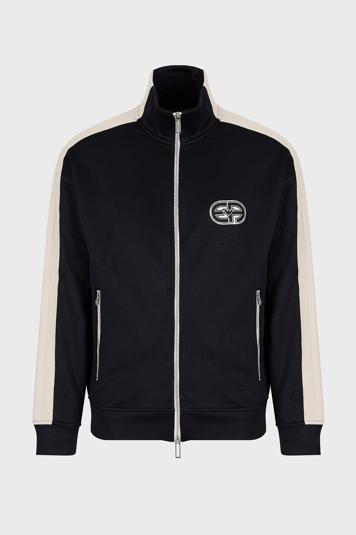 Logolu Dik Yaka Fermuarlı Pamuk Karışımlı Slim Fit Erkek Sweat 3R1MCX 1JLYZ 0920 LACİVERT