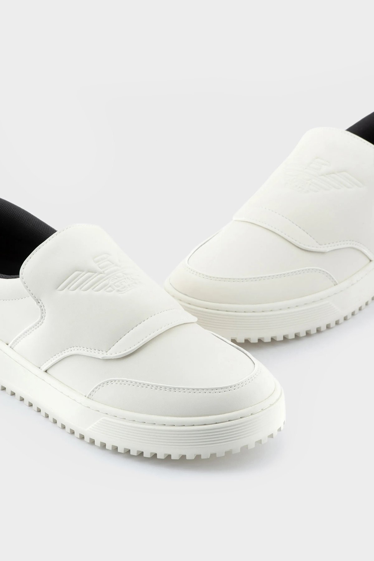 Logolu Hakiki Deri Slip-On Erkek Ayakkabı X4Y003 XF650 00894 BEYAZ
