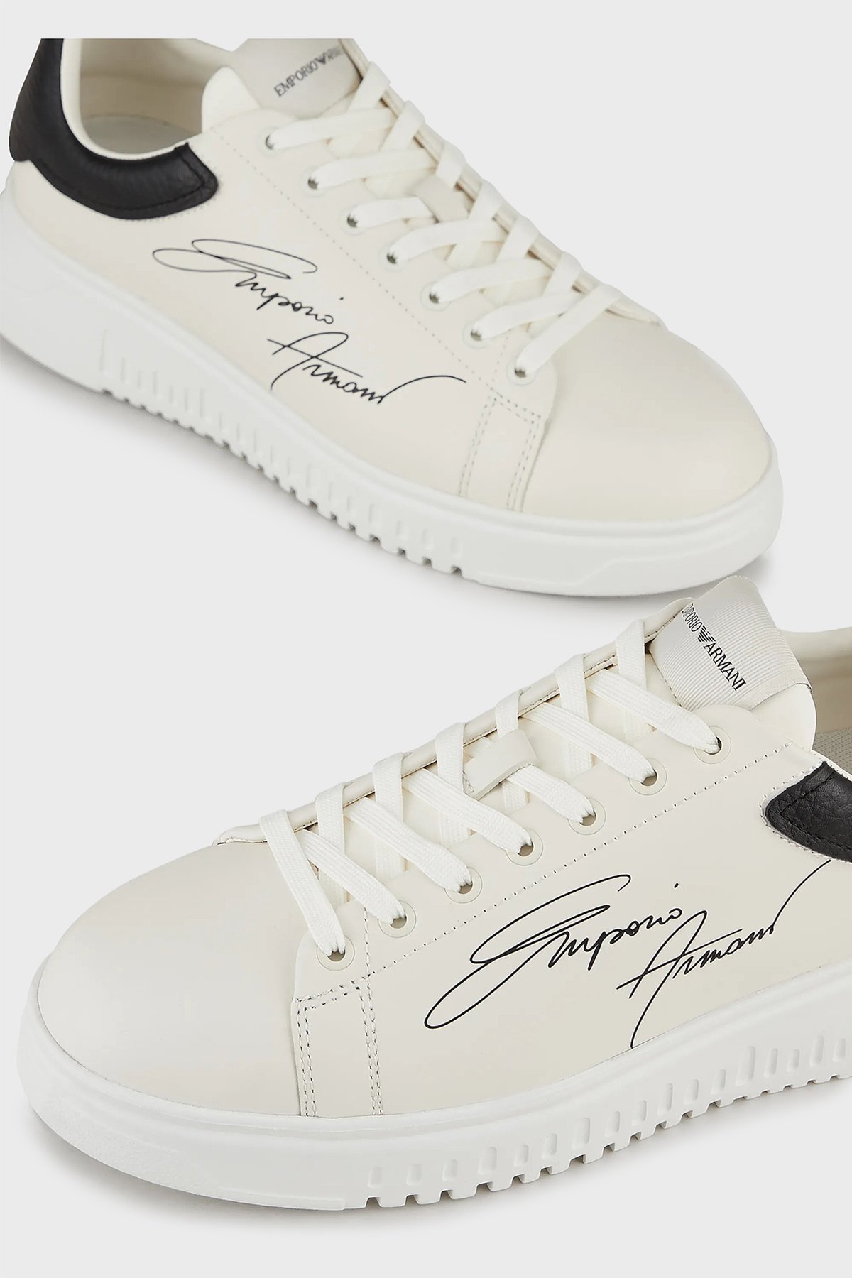 Logolu Hakiki Deri Sneaker Erkek Ayakkabı X4X264 XM670 N422 BEYAZ