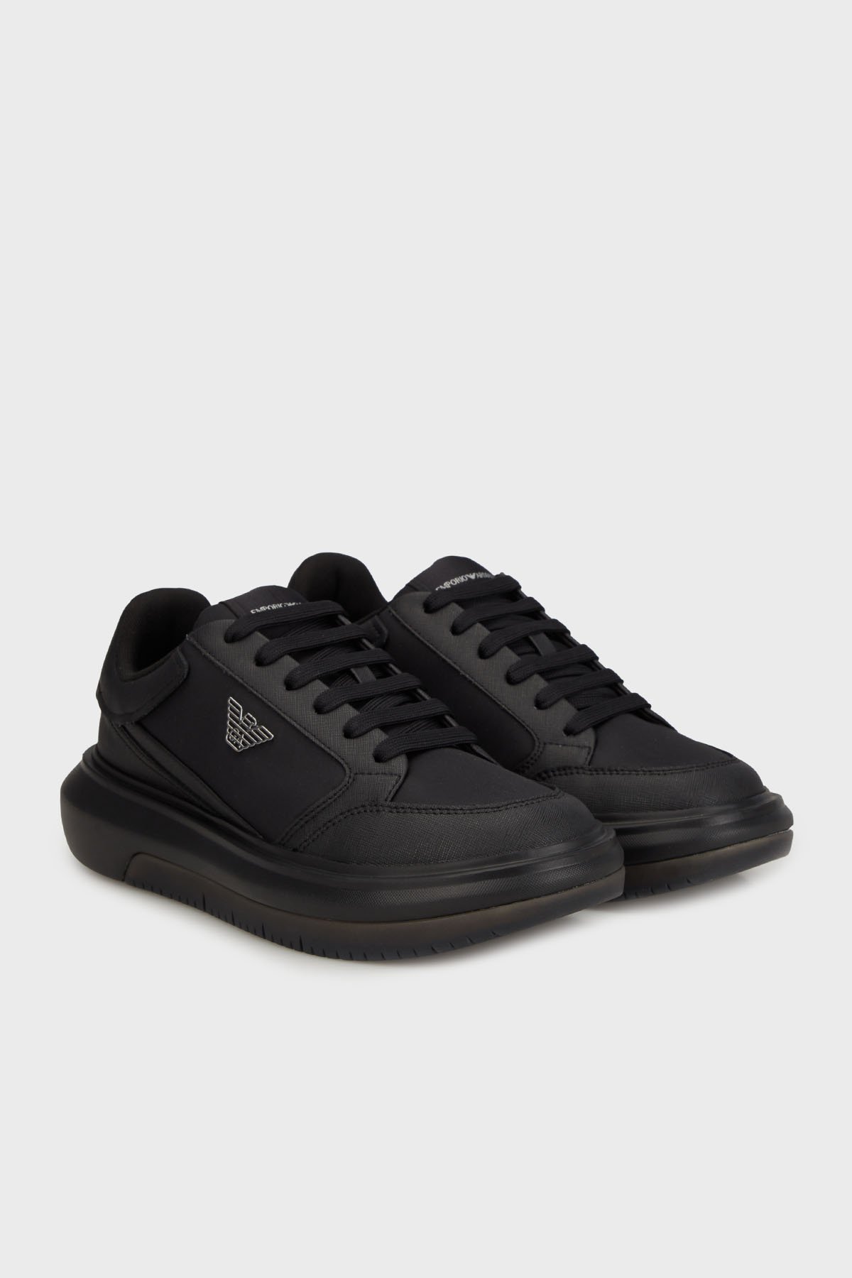 Logolu Kalın Taban Sneaker Erkek Ayakkabı EM003666 AF19532 MC105 SİYAH