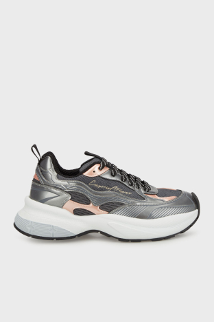 Logolu Metalik Detaylı Kalın Taban Sneaker Bayan Ayakkabı EW003056 AF19766 M8254 Koyu Gri-Pembe
