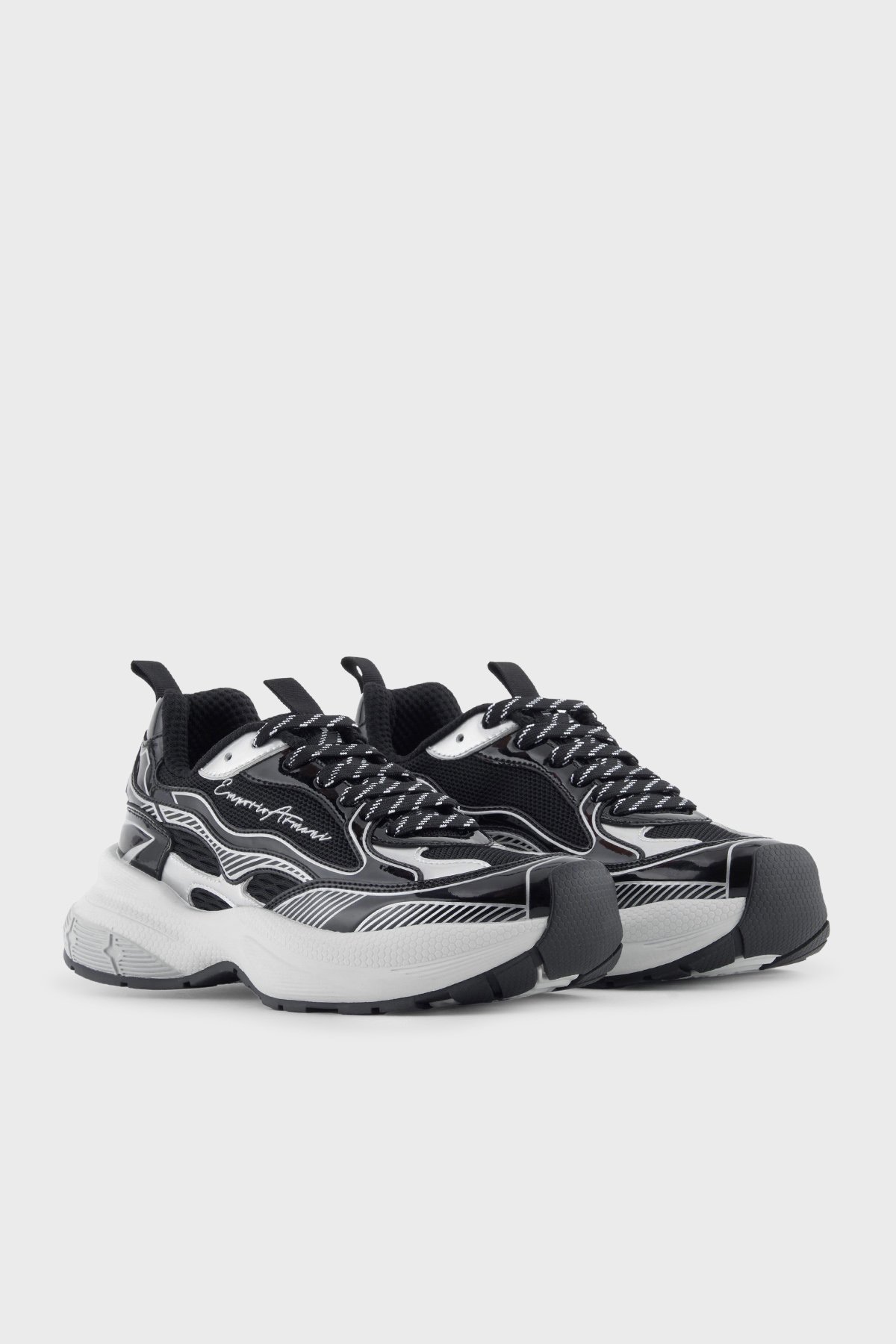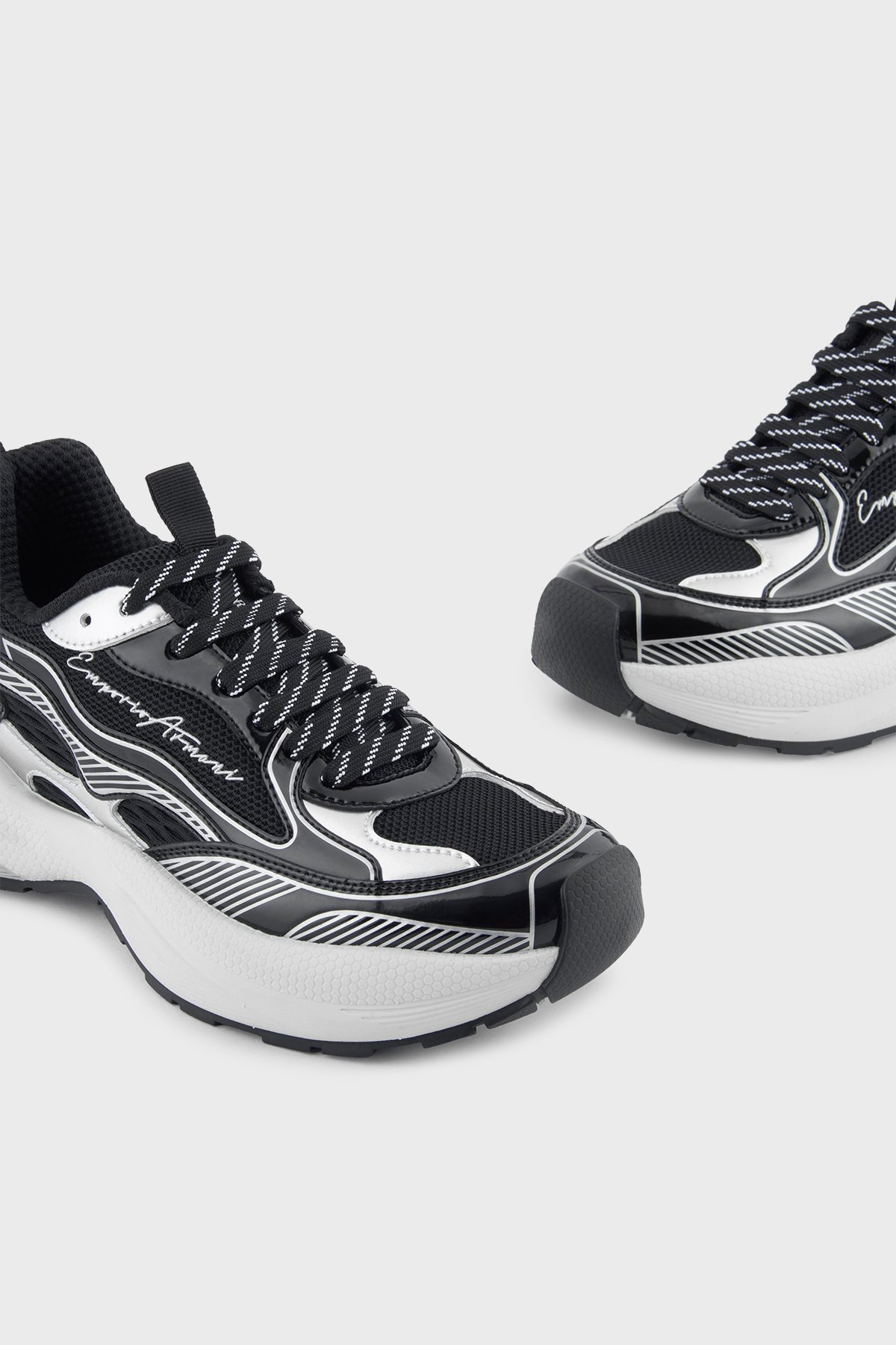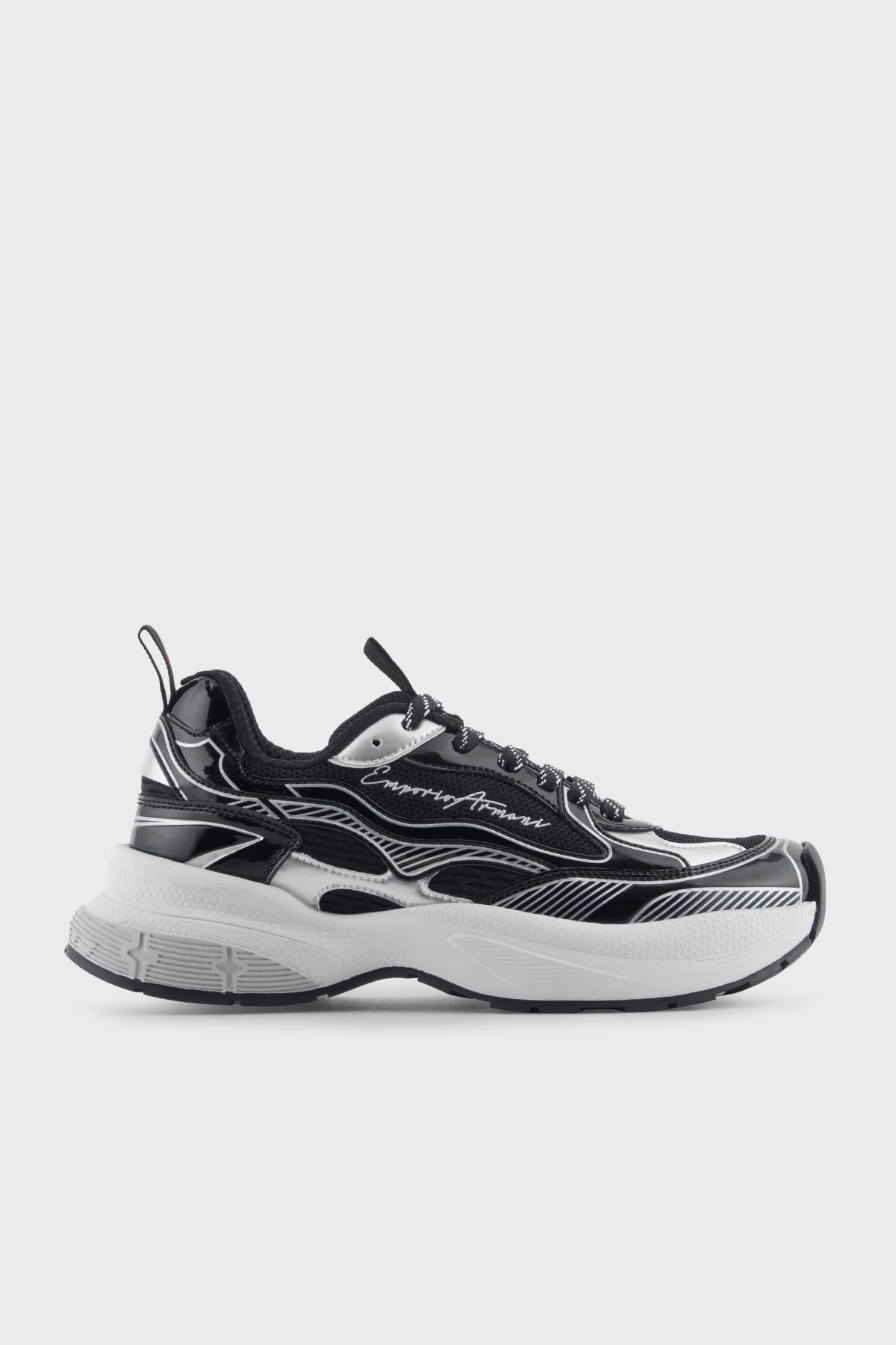 Logolu Metalik Detaylı Kalın Taban Sneaker Bayan Ayakkabı EW003056 AF19766 MC372 SİYAH-GÜMÜŞ