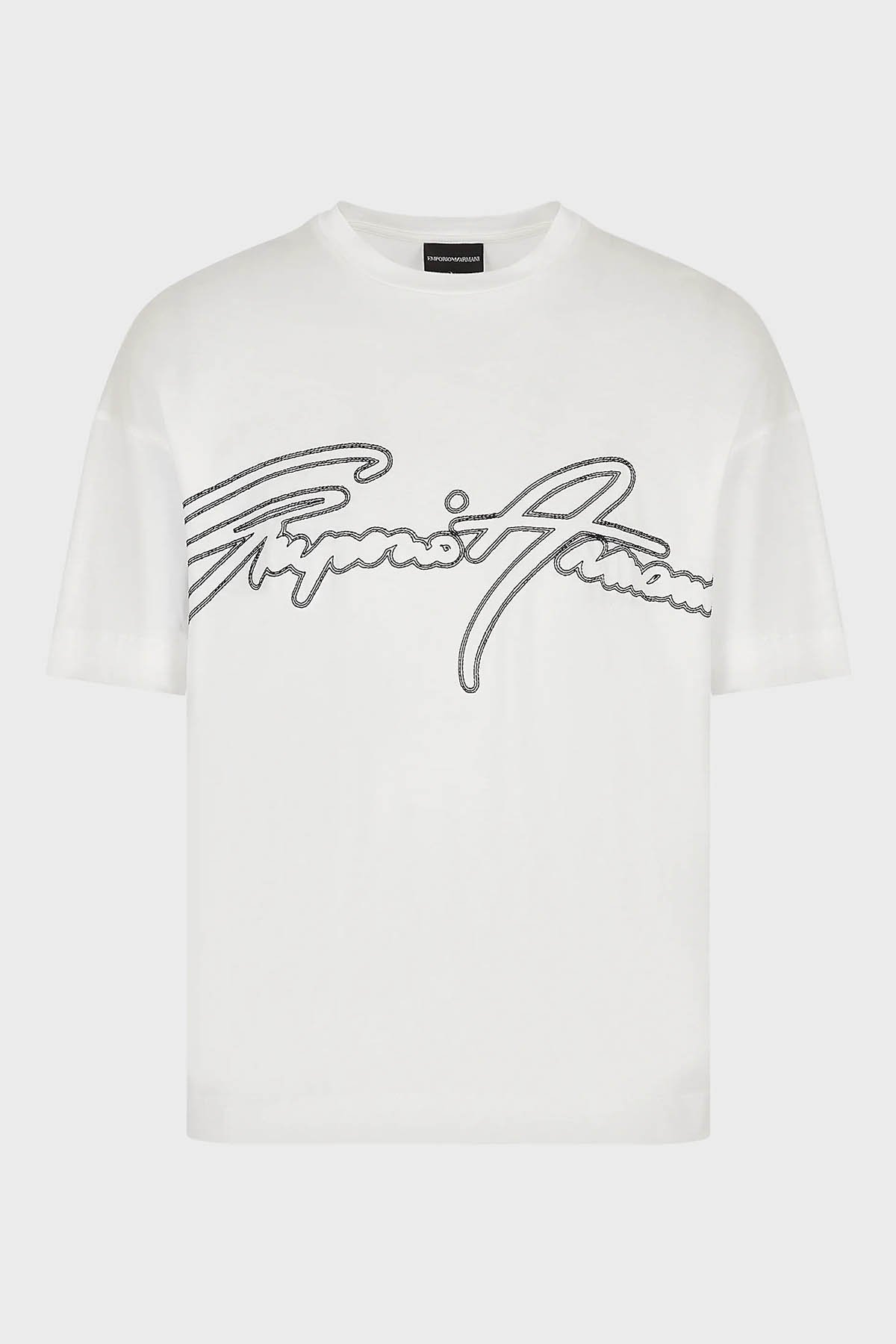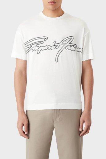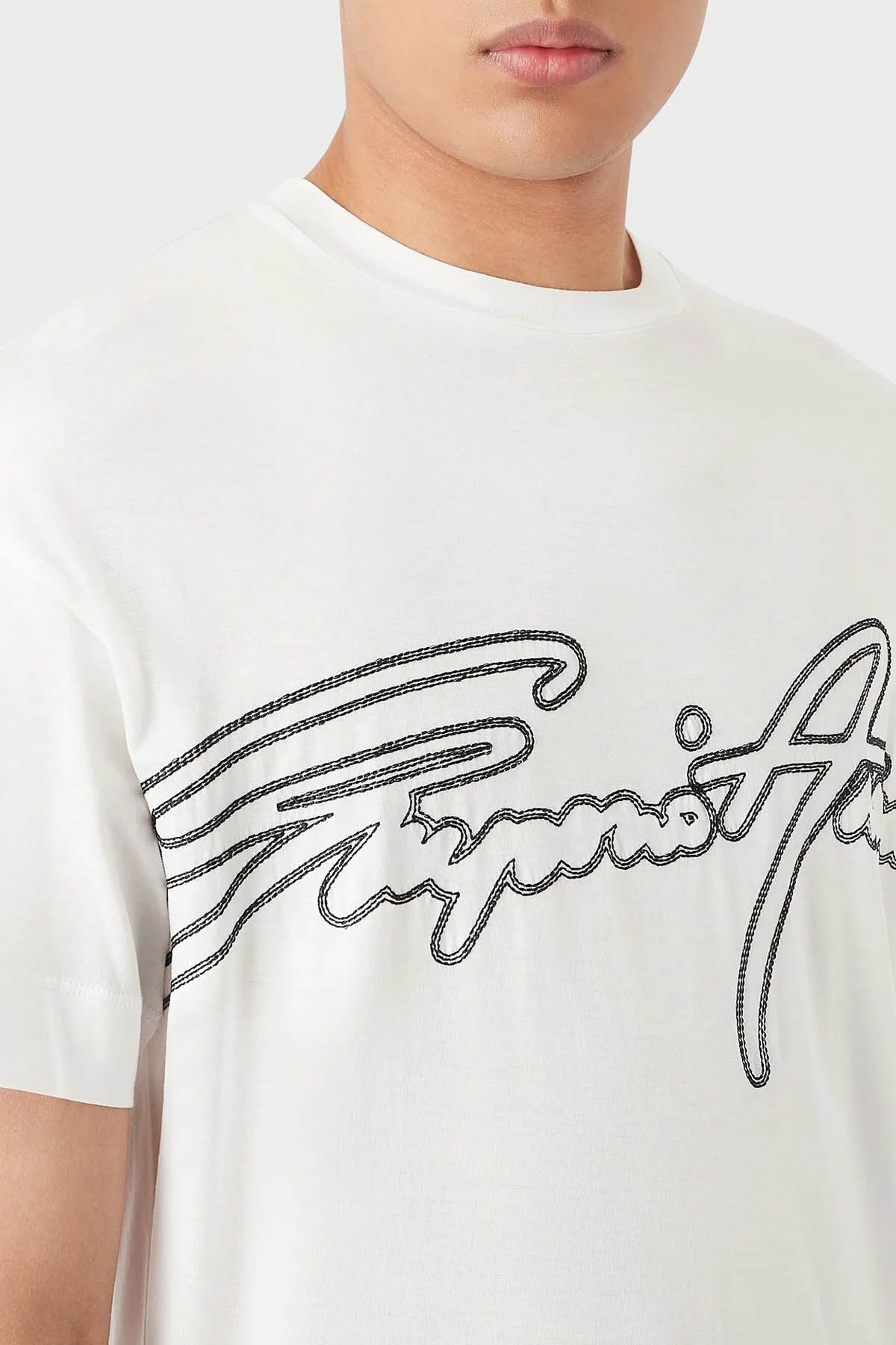Logolu Pamuk Karışımlı Bisiklet Yaka Regular Fit Erkek T Shirt 3R1TV2 1JUVZ 0101 BEYAZ