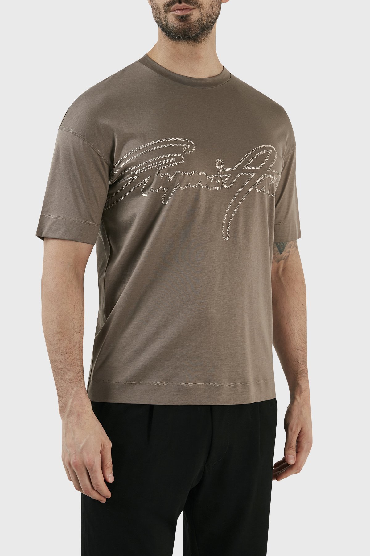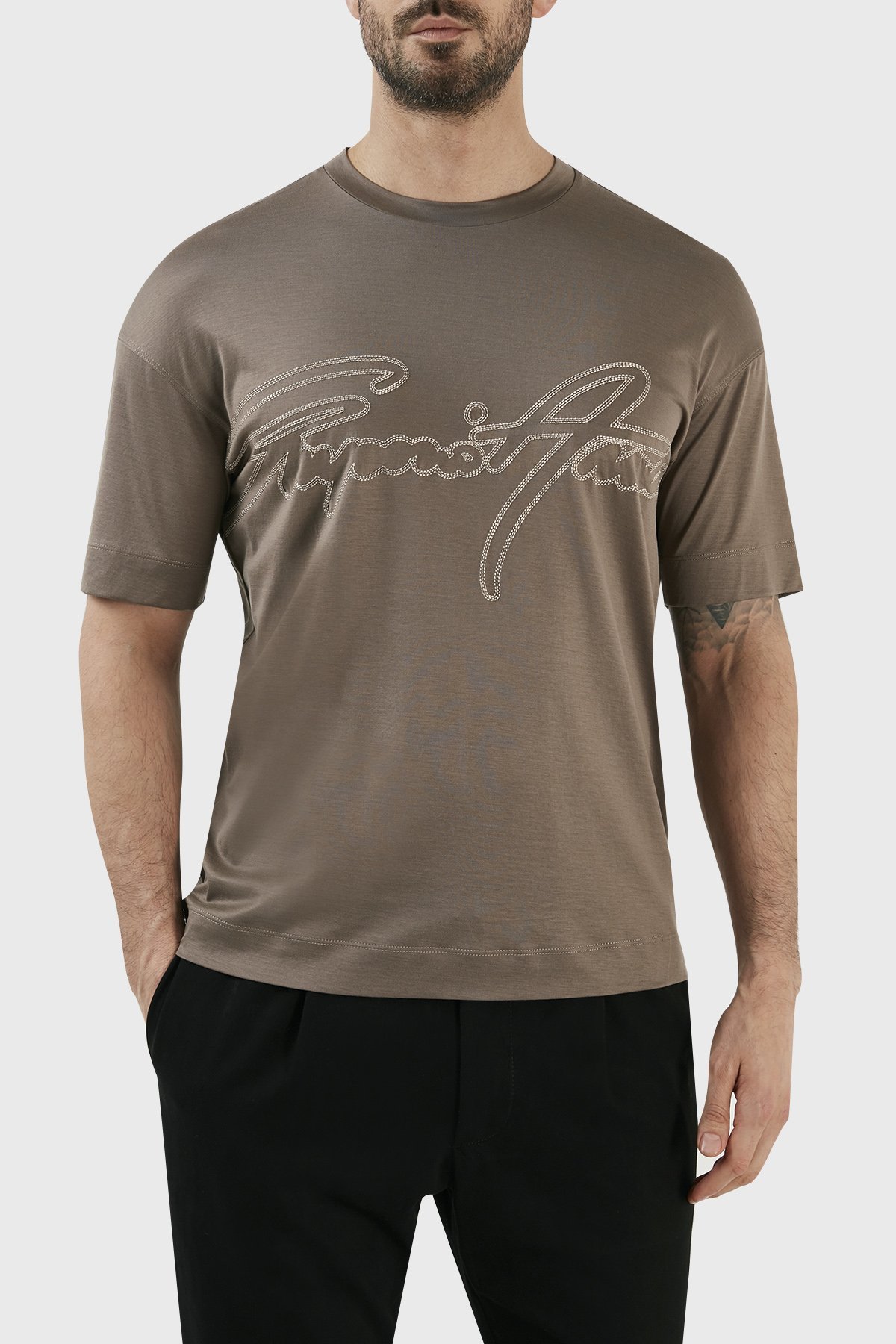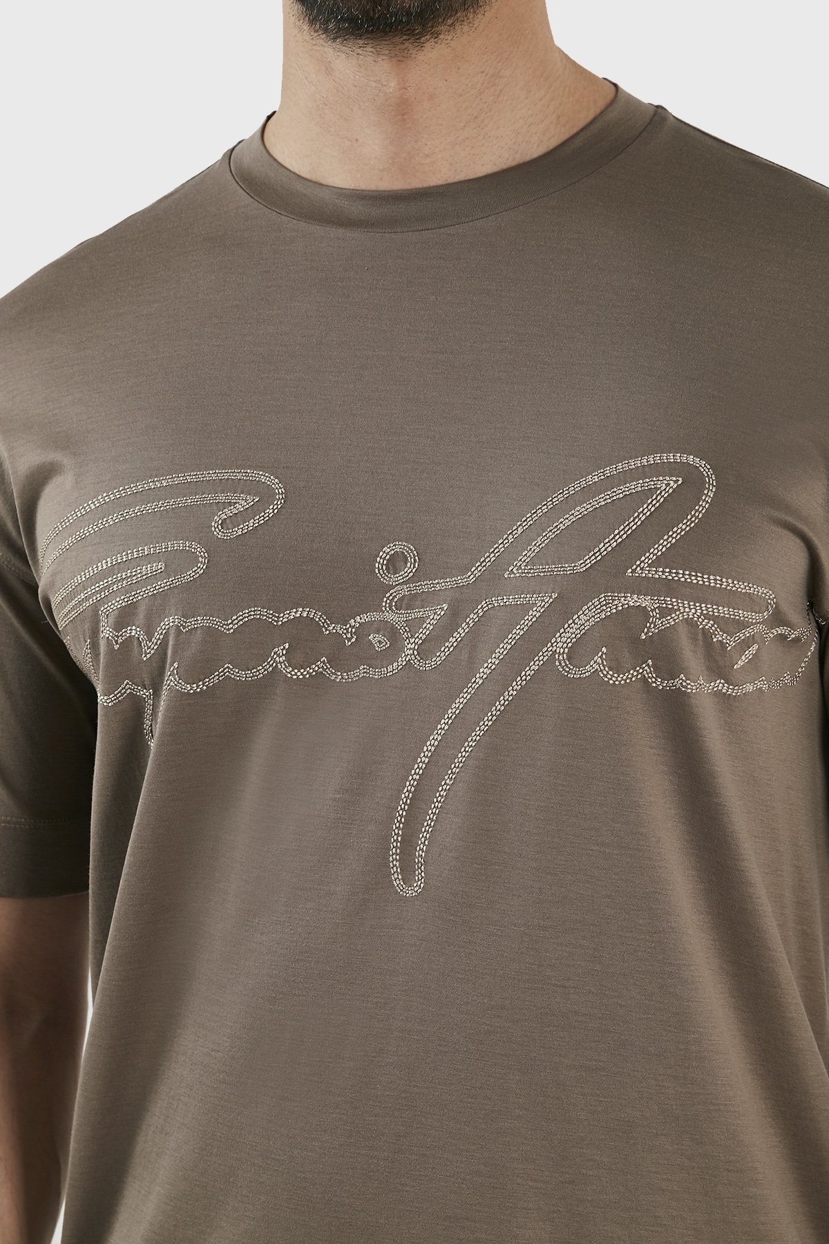 Logolu Pamuk Karışımlı Bisiklet Yaka Regular Fit Erkek T Shirt 3R1TV2 1JUVZ 0440 TOPRAK
