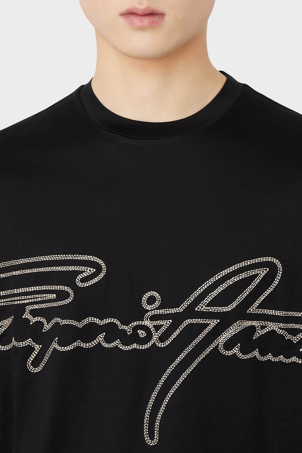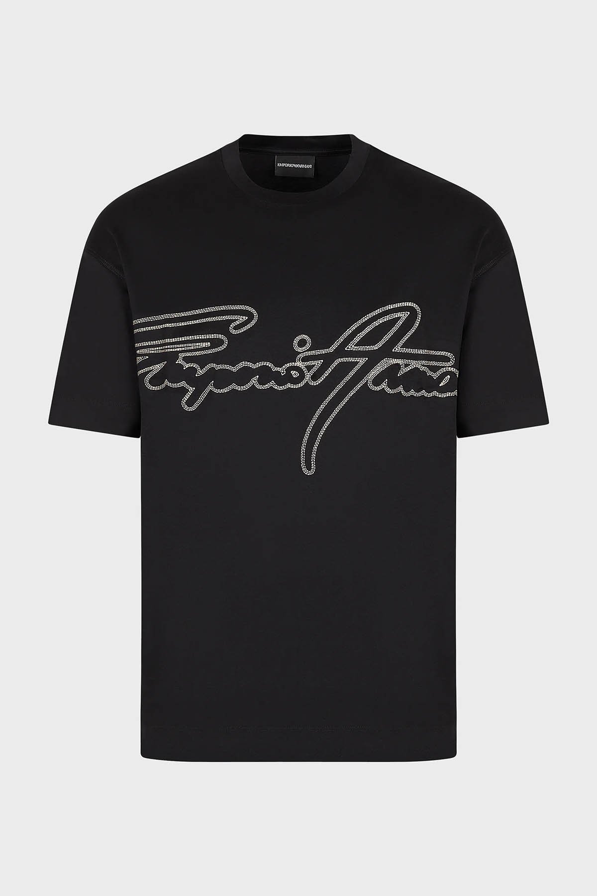 Logolu Pamuk Karışımlı Bisiklet Yaka Regular Fit Erkek T Shirt 3R1TV2 1JUVZ 0999 SİYAH