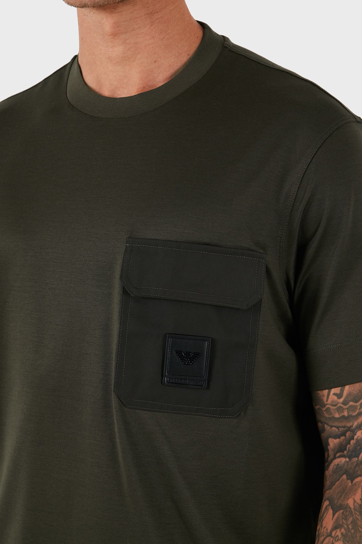 Logolu Pamuklu Regular Fit Göğüs Cepli Erkek T Shirt EM002978 AF10761 U8120 KOYU HAKİ