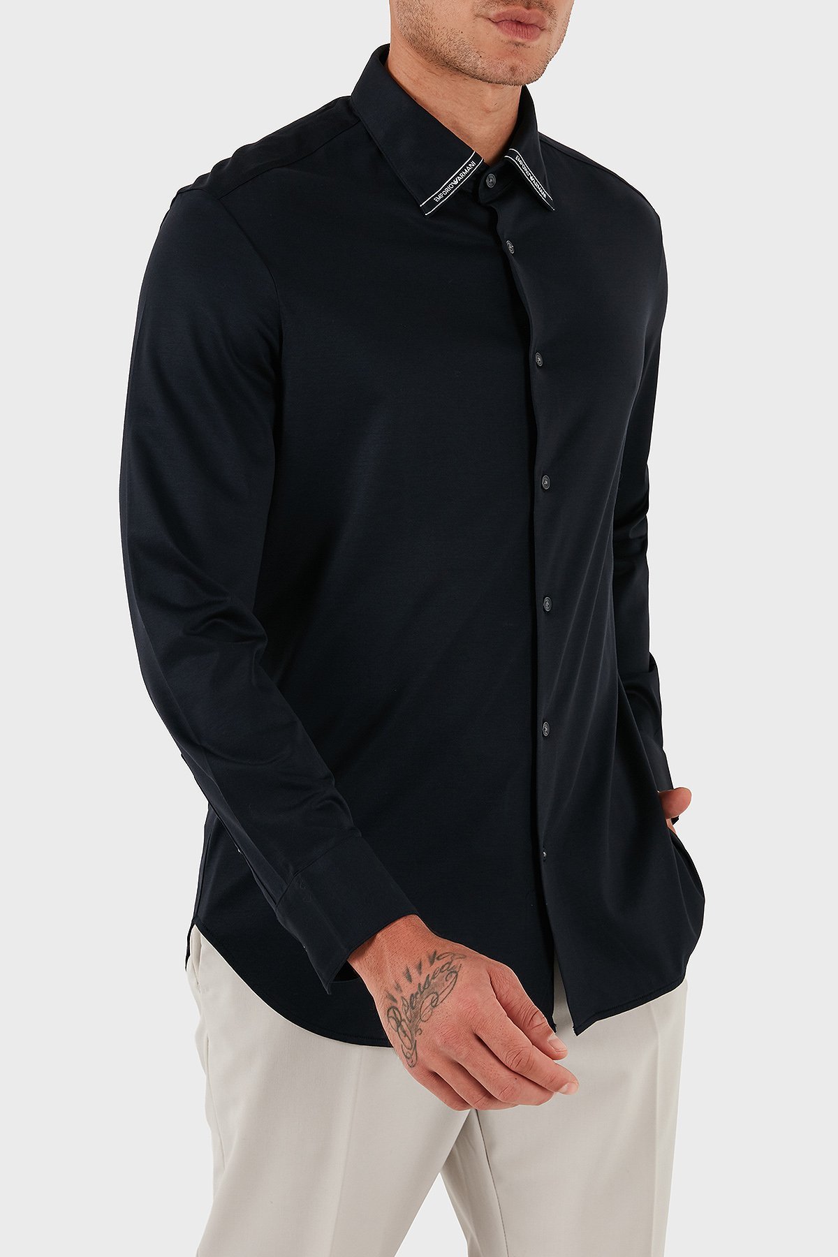 Logolu Pamuklu Regular Fit Klasik Yaka Erkek Gömlek EM003055 AF10761 UB118 LACİVERT