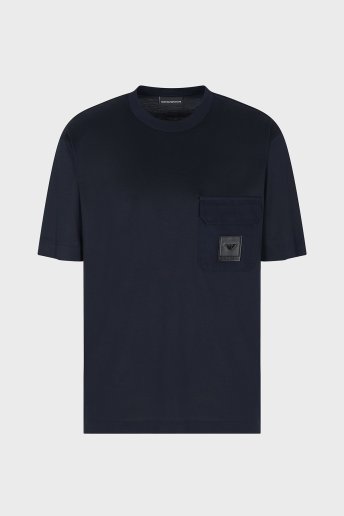 Logolu Pamuklu Regular Fit Tek Göğüs Cepli Erkek T Shirt EM002978 AF10761 UB118 LACİVERT