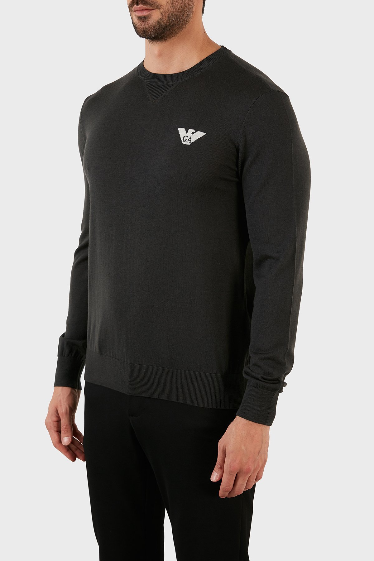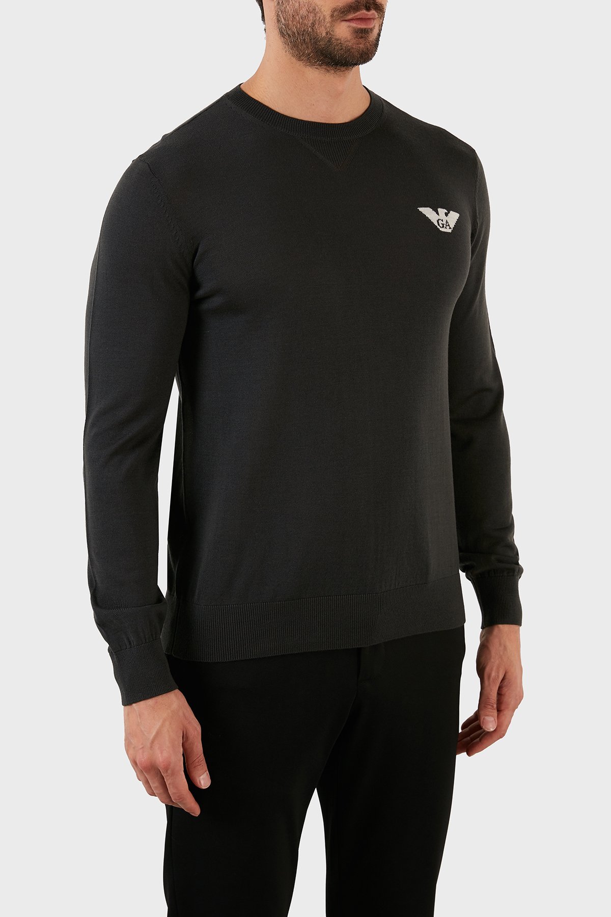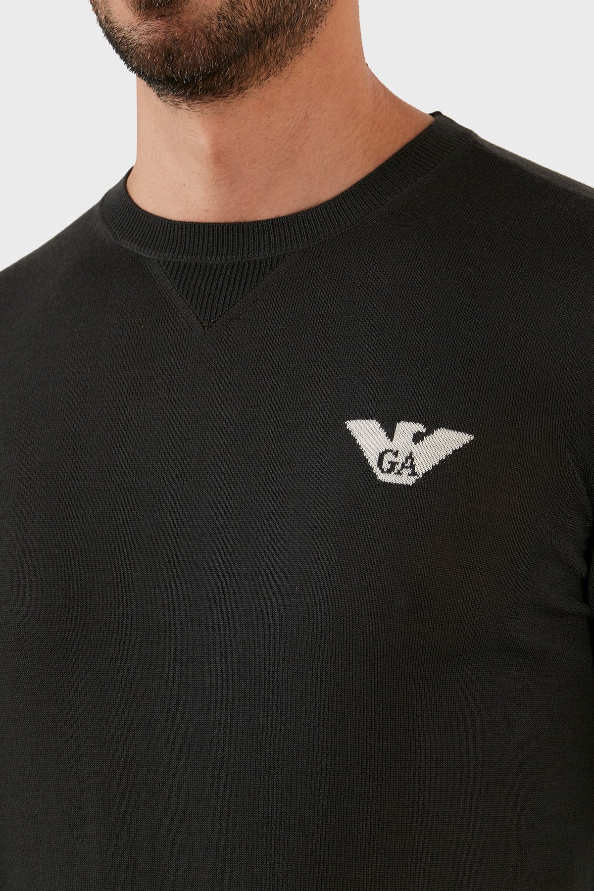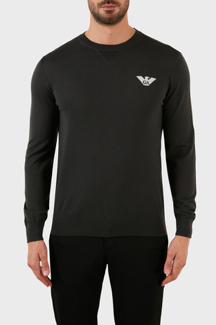 Logolu Regular Fit Bisiklet Yaka % 100 Yün Erkek Kazak 6L1MXG 1MJVZ 0558 YEŞİL