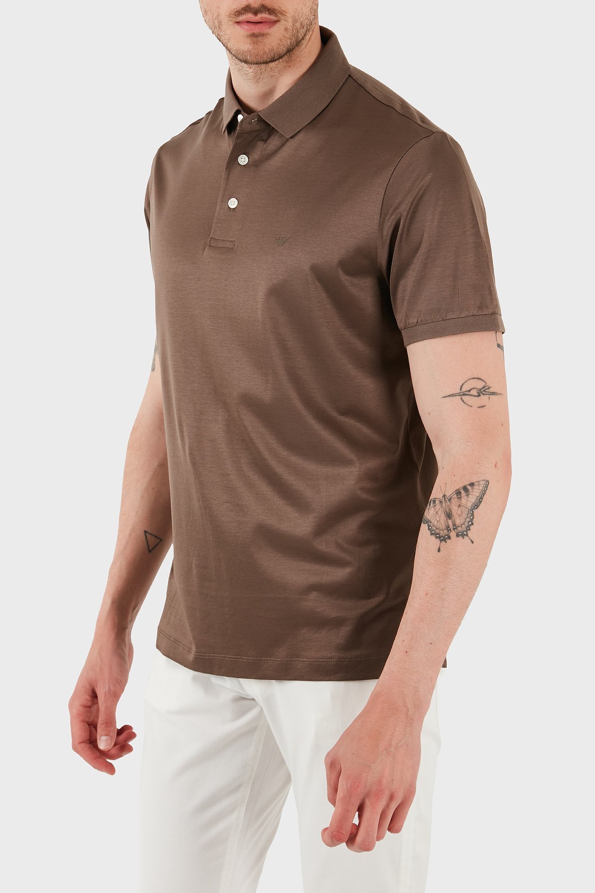 Logolu Regular Fit Düğmeli Erkek Polo Yaka T Shirt 8N1F96 1JUVZ U6195 KAHVE