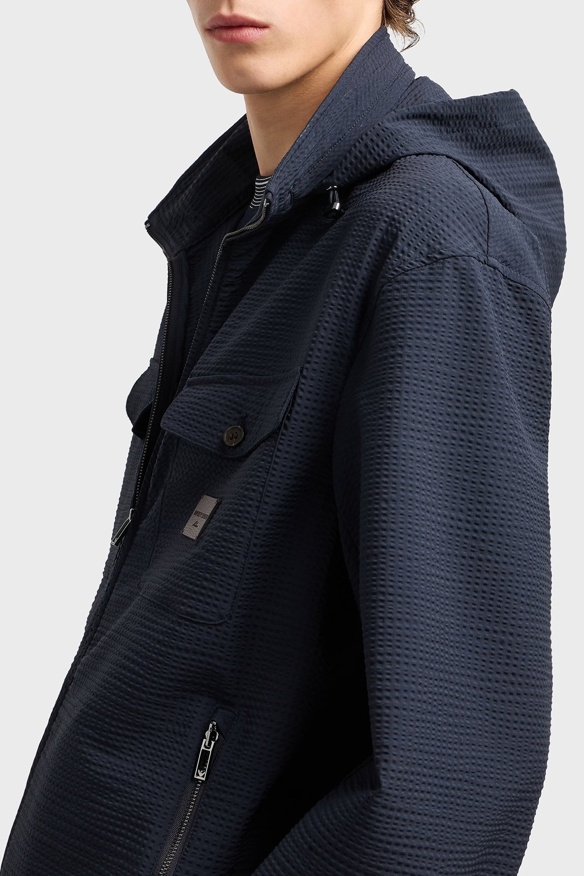 Logolu Regular Fit Gizli Kapüşonlu Erkek Mont EM003405 AF18781 UB118 LACİVERT