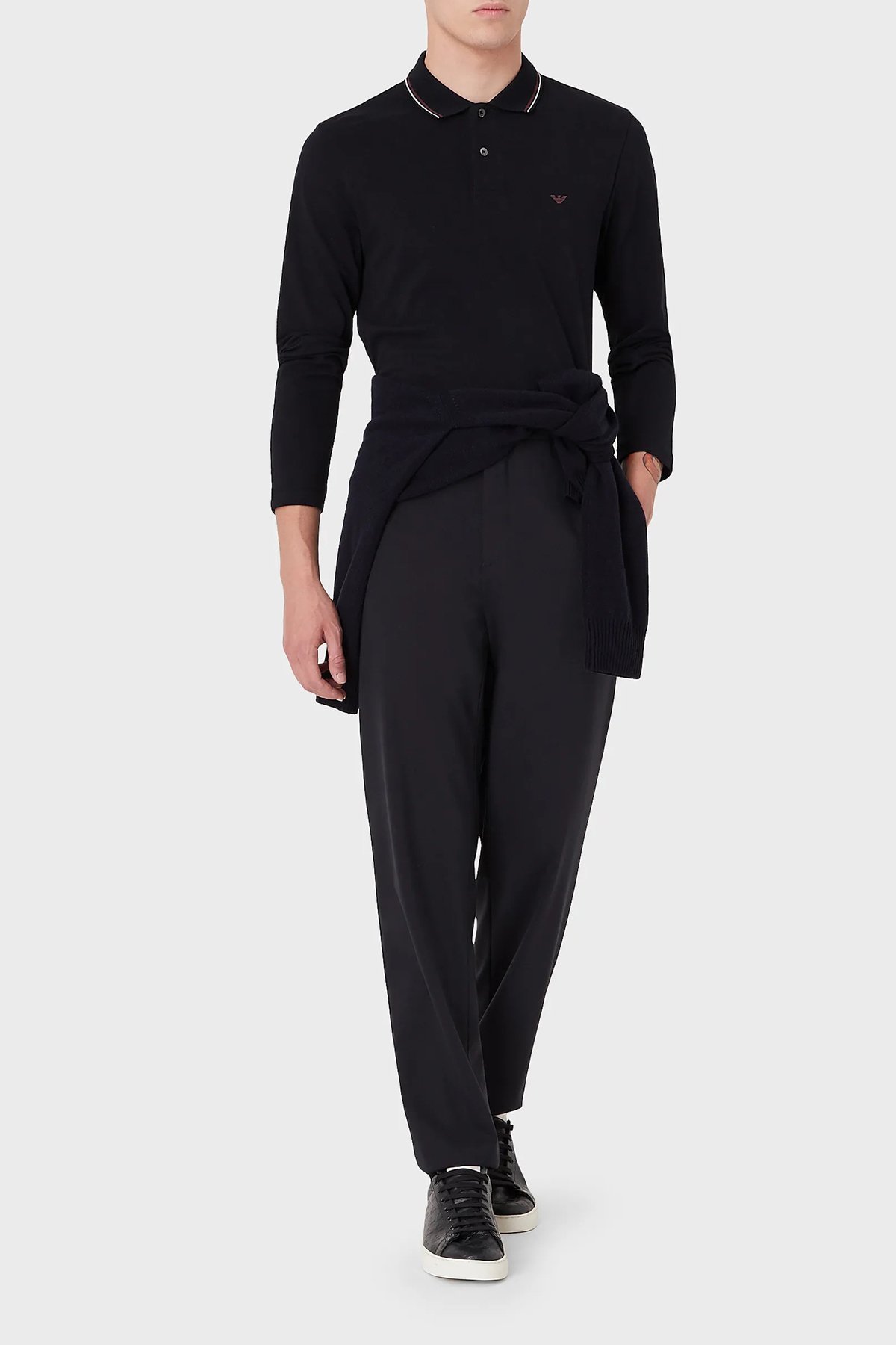 Logolu Regular Fit Pamuklu Uzun Kollu Erkek Polo T Shirt 8N1FB5 1JPTZ 0920 LACİVERT