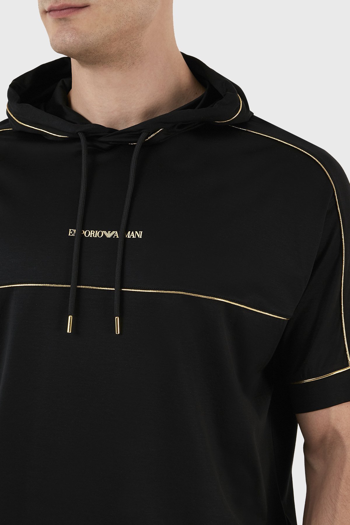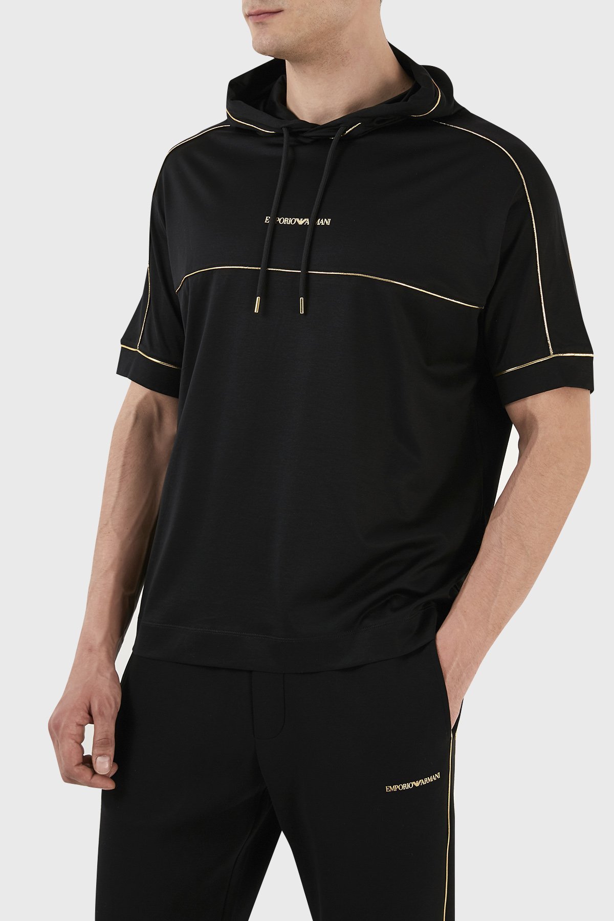 Logolu Relaxed Fit Kapüşonlu Erkek T Shirt 3R1TL6 1JUVZ 0999 SİYAH
