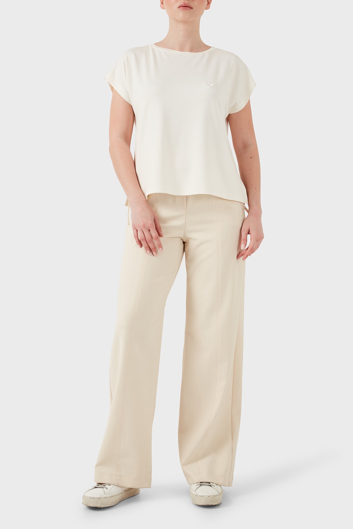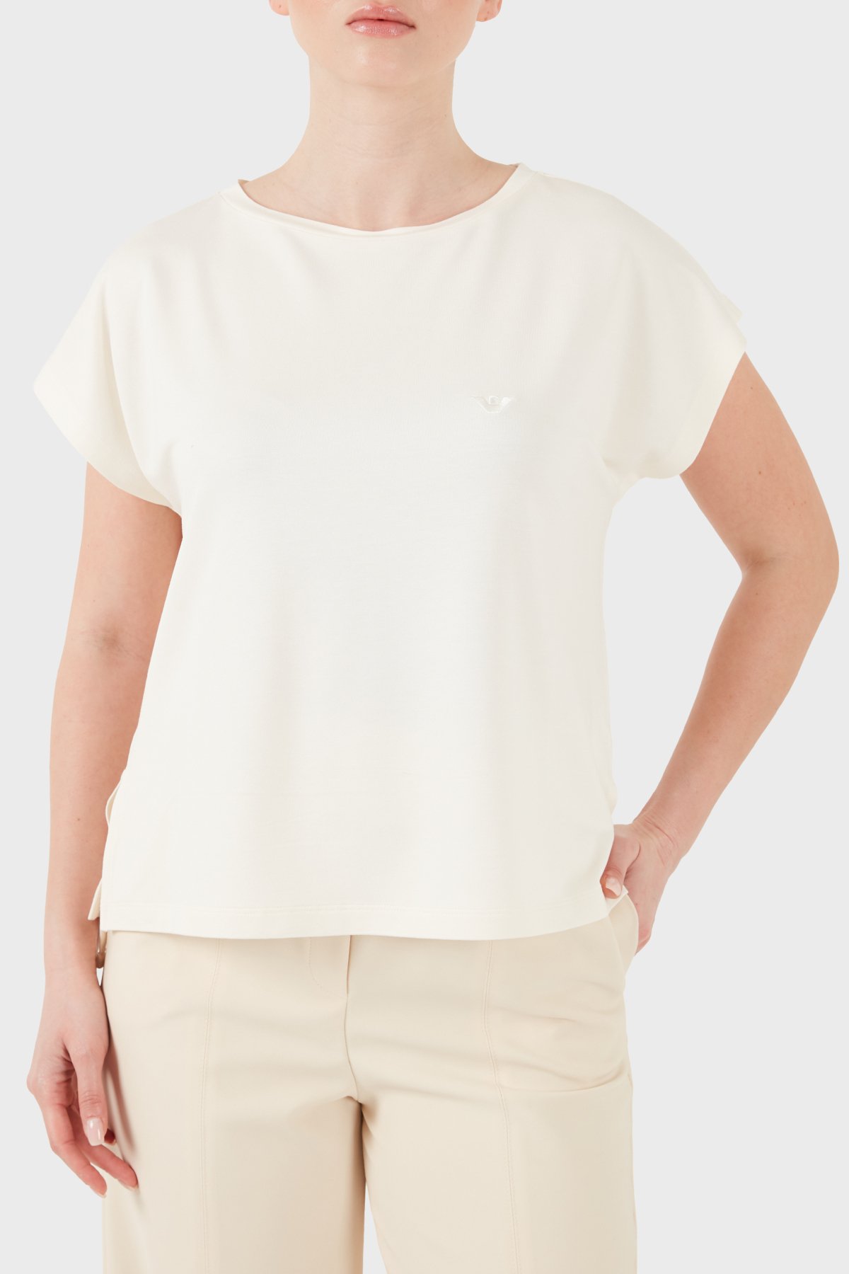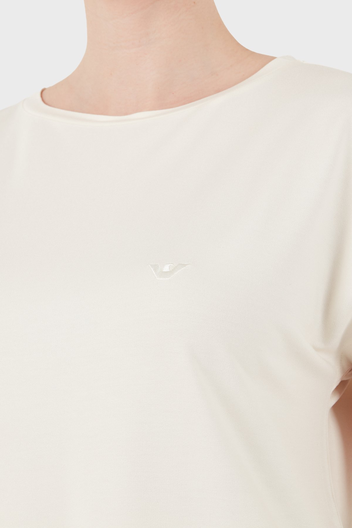 Logolu Relaxed Fit Yuvarlak Yaka Kadın T Shirt EW002908 AF19032 U1054 EKRU