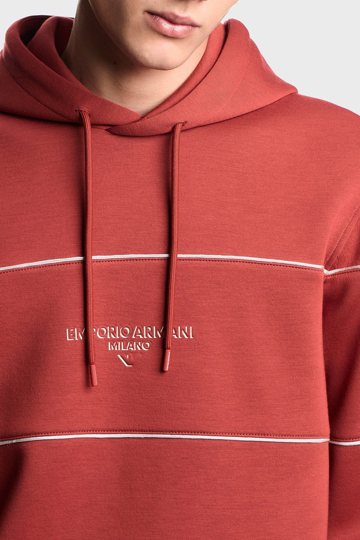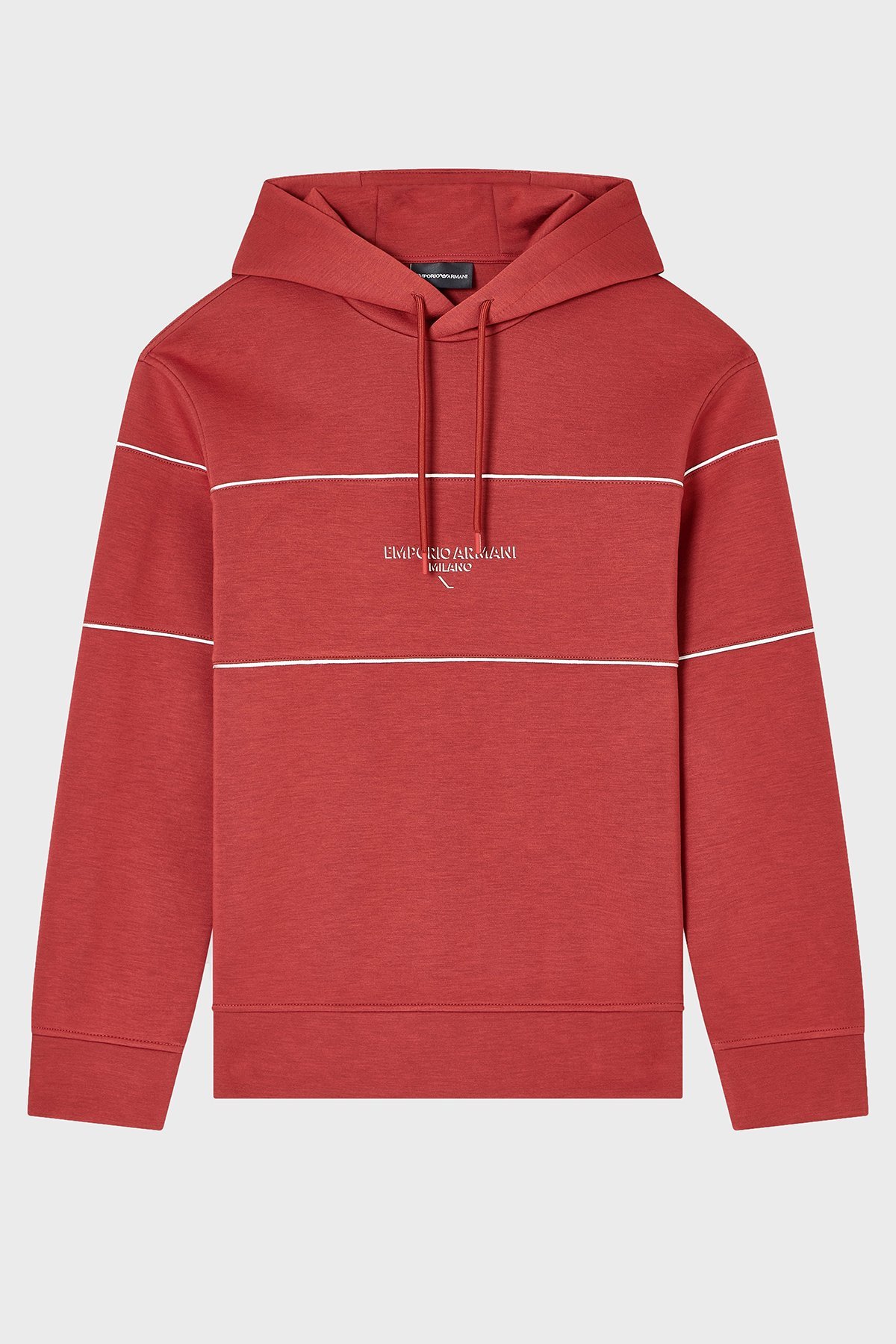 Logolu Şerit Detaylı Regular Fit Kapüşonlu Erkek Sweat EM002885 AF17545 U5035 KIRMIZI