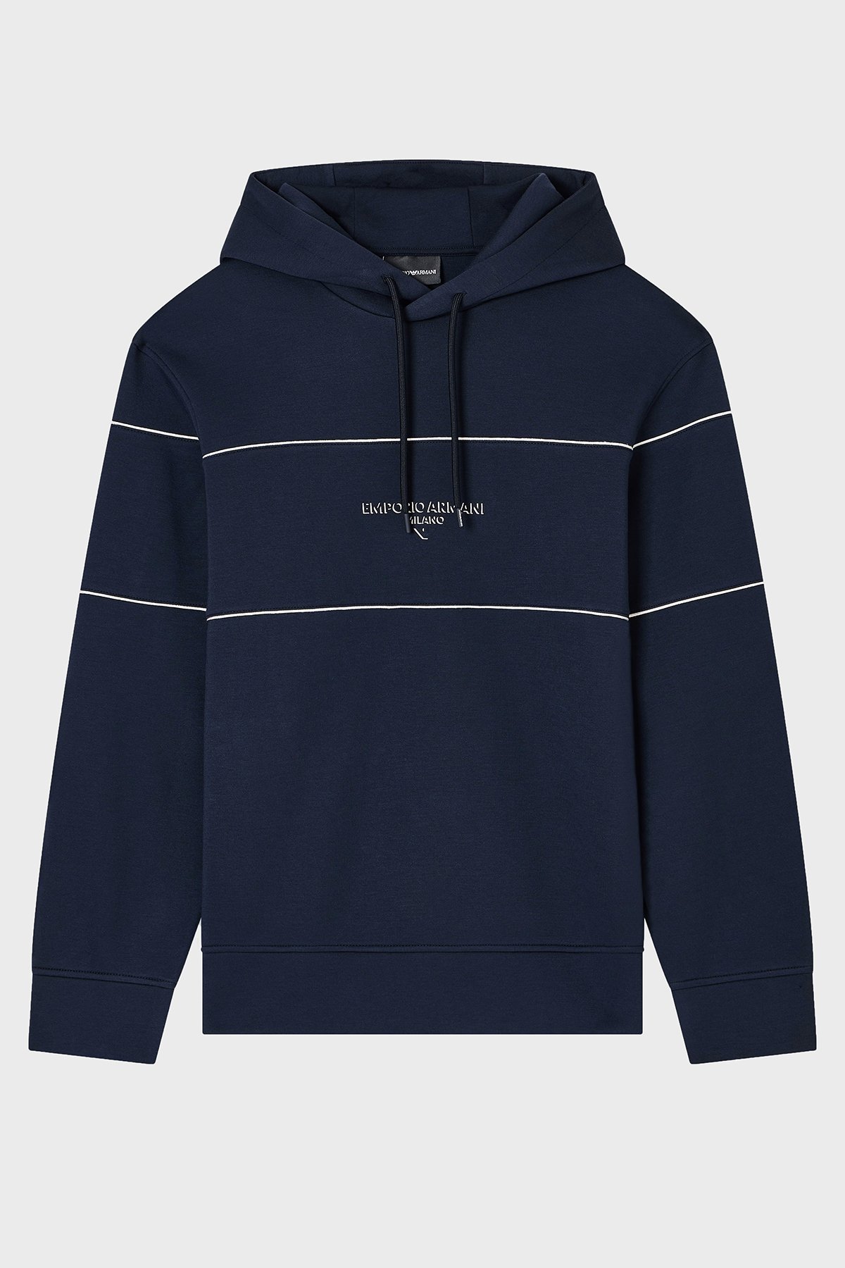 Logolu Şerit Detaylı Regular Fit Kapüşonlu Erkek Sweat EM002885 AF17545 UB118 LACİVERT