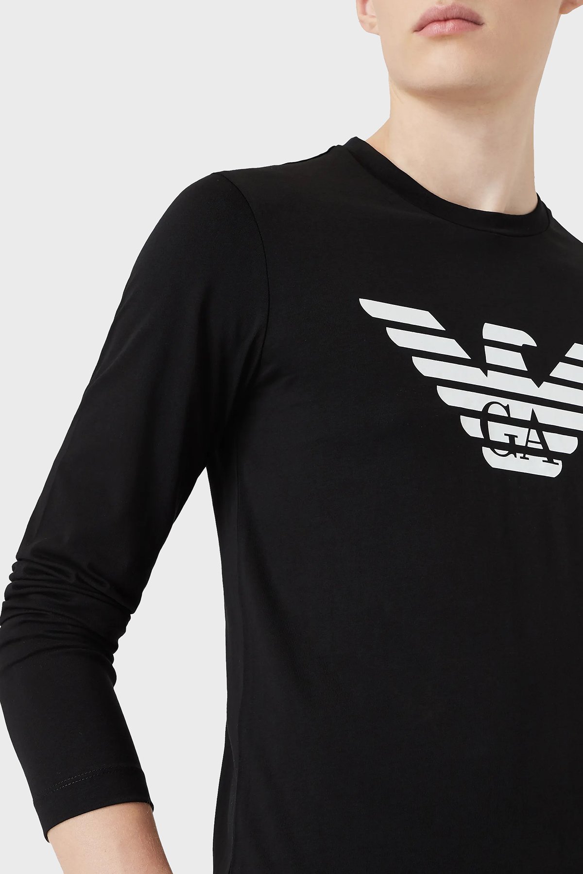 Logolu Slim Fit Bisiklet Yaka Uzun Kollu Pamuklu Erkek T Shirt 8N1TN8 1JPZZ 0022 SİYAH