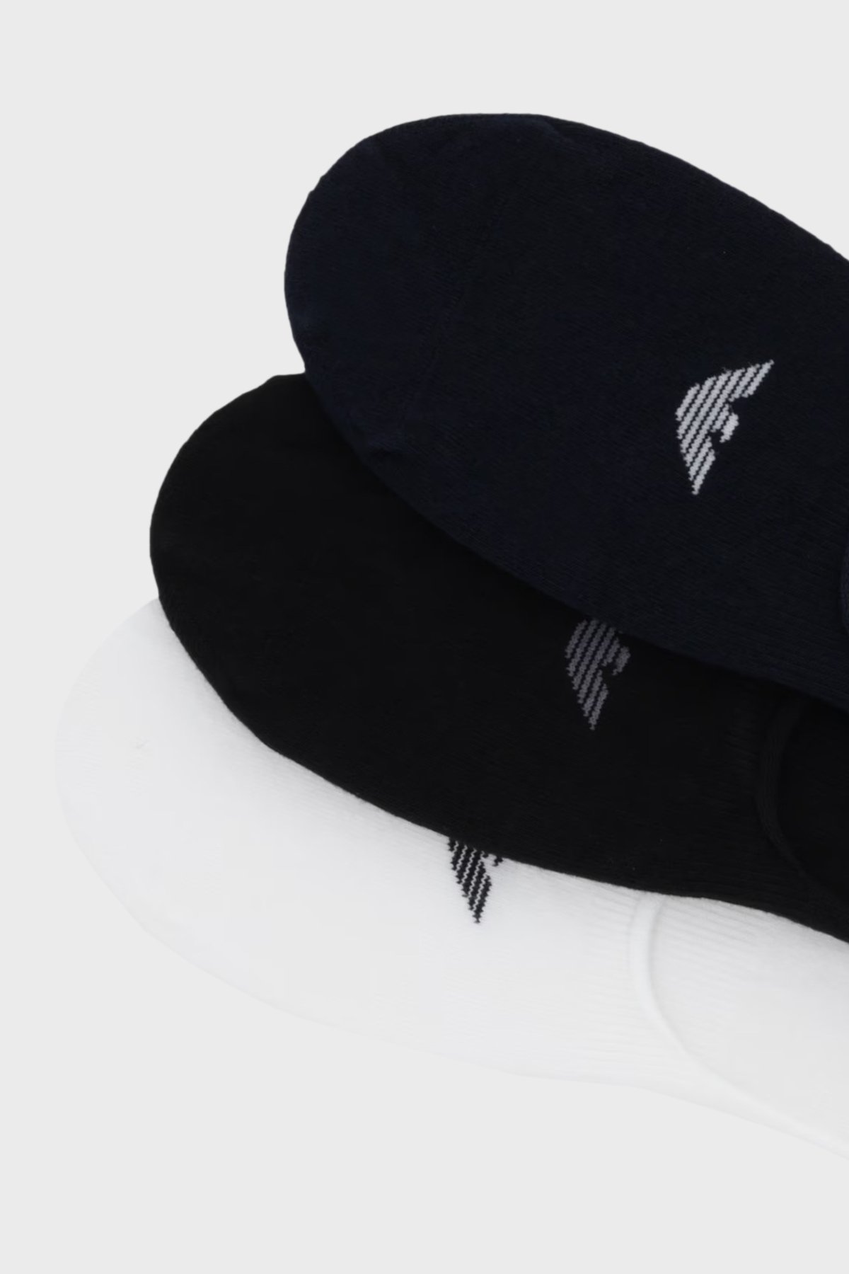 Logolu Streç Pamuklu 3 Pack Babet Erkek Çorap EM000548 AF14446 M0091 Mavi-Siyah-Beyaz