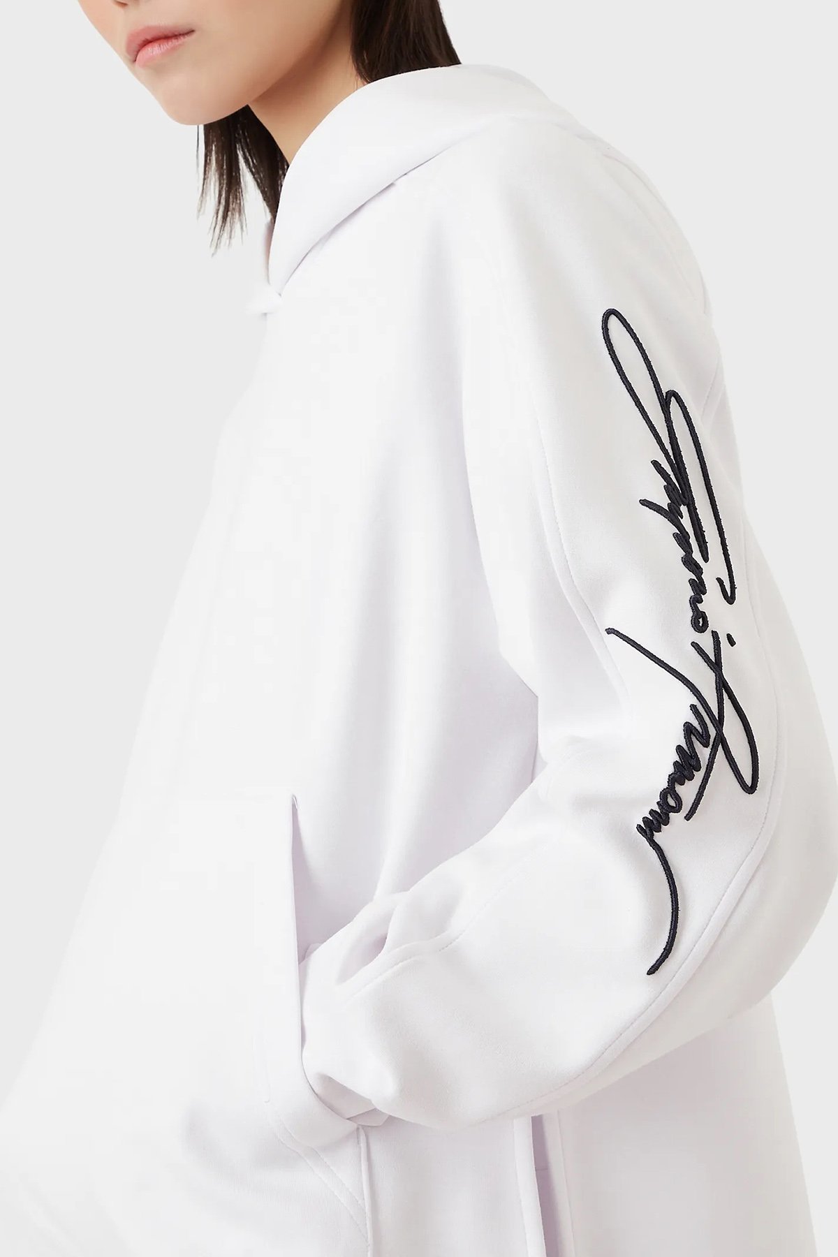 Emporio Armani Streç Pamuklu Boyfirend Fit Kapüşonlu Bayan Sweat 6D2M7F 2J49Z 0101 BEYAZ - Emporio Armani Emporio Armani Streç Pamuklu Boyfirend Fit Kapüşonlu Bayan Sweat 6D2M7F 2J49Z 0101 BEYAZ - Emporio Armani (1)