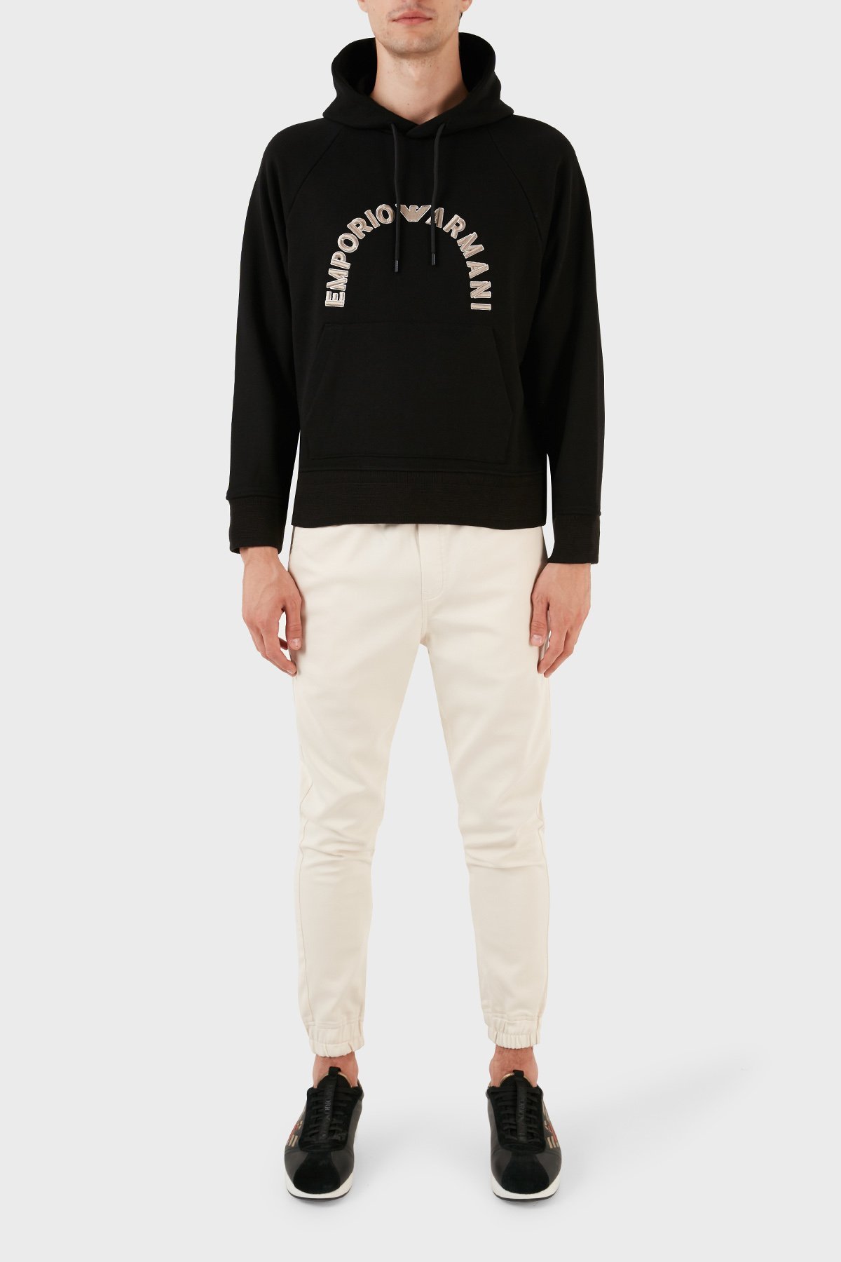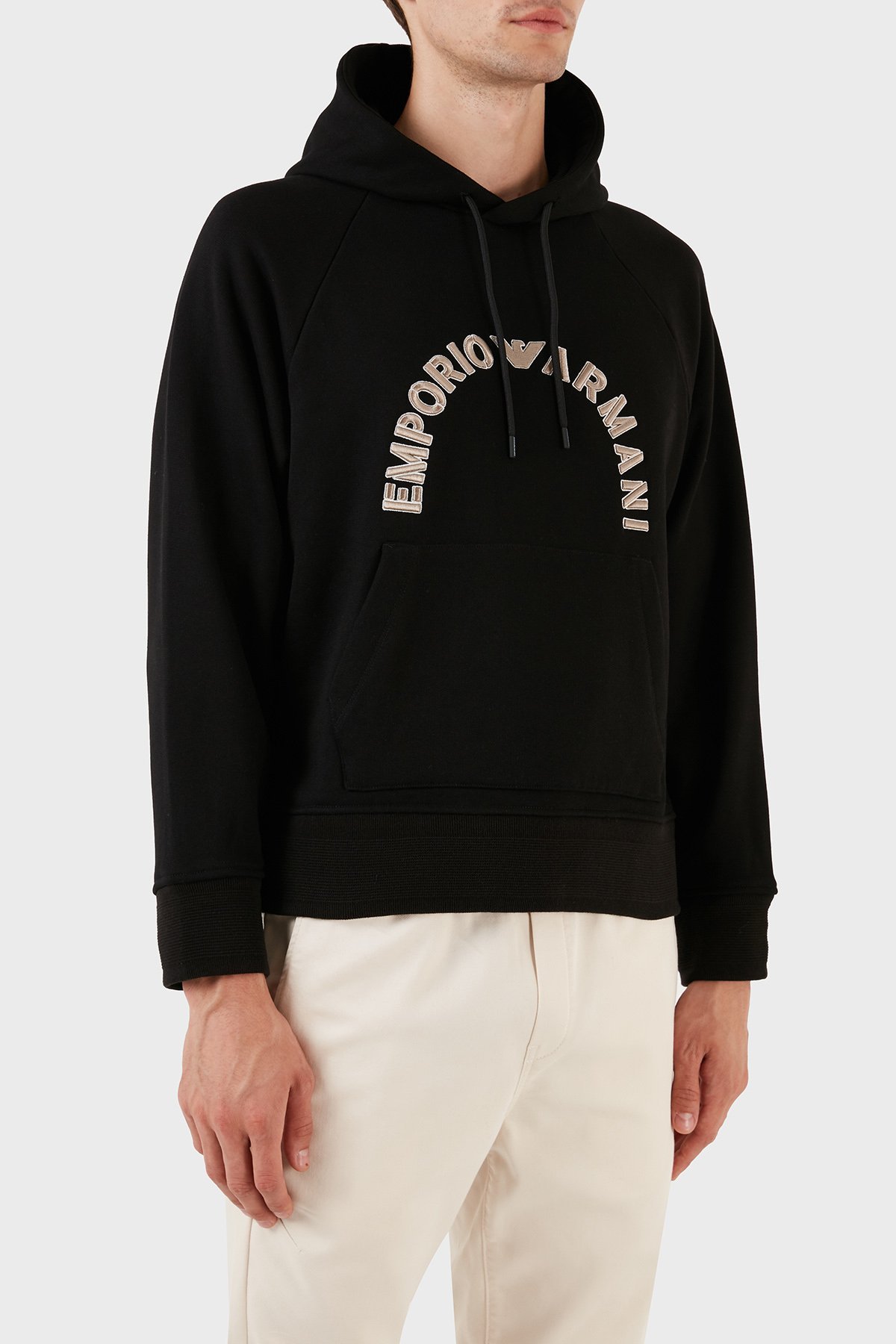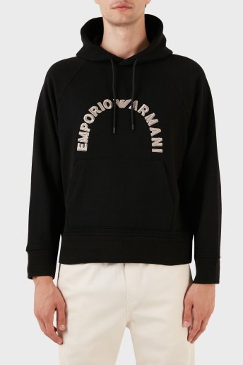 Nakış İşlemeli Logolu Kapüşonlu Cepli Regular Fit Pamuklu Erkek Sweat 6R1ME9 1JWPZ 00C5 SİYAH