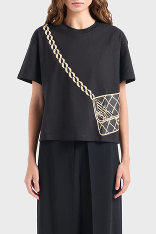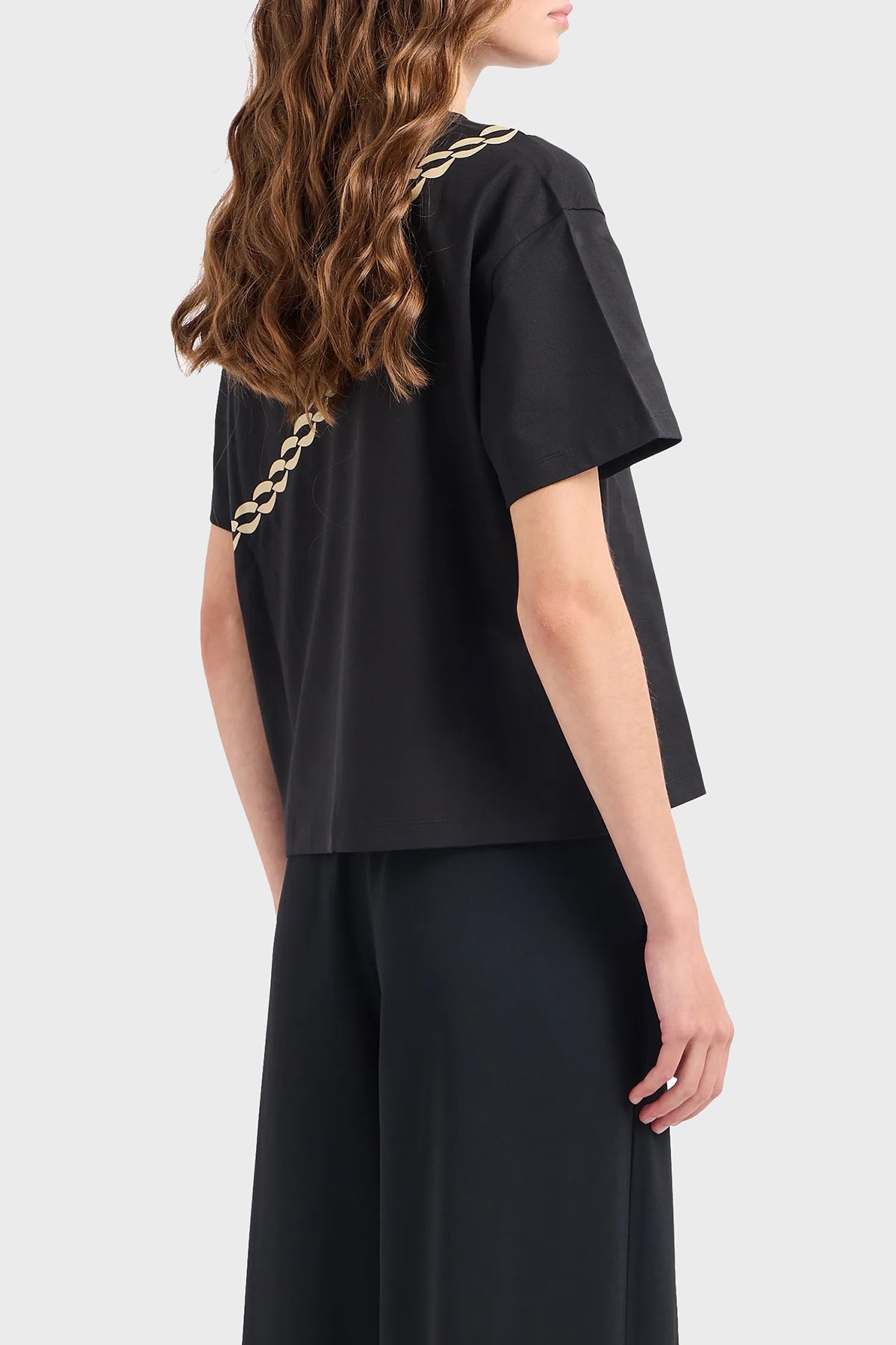 Organik Pamuklu Boxy Fit Bisiklet Yaka Bayan T Shirt 3D2T7E 2J4EZ 0999 SİYAH